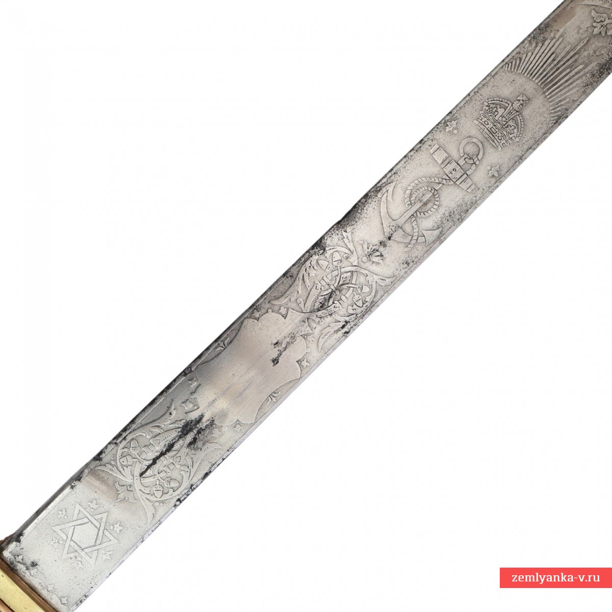 Предмет находится в хорошем коллекционном состоянии. Местечковые следы коррозии на клинке. Следы бытования на эфесе и ножнах.