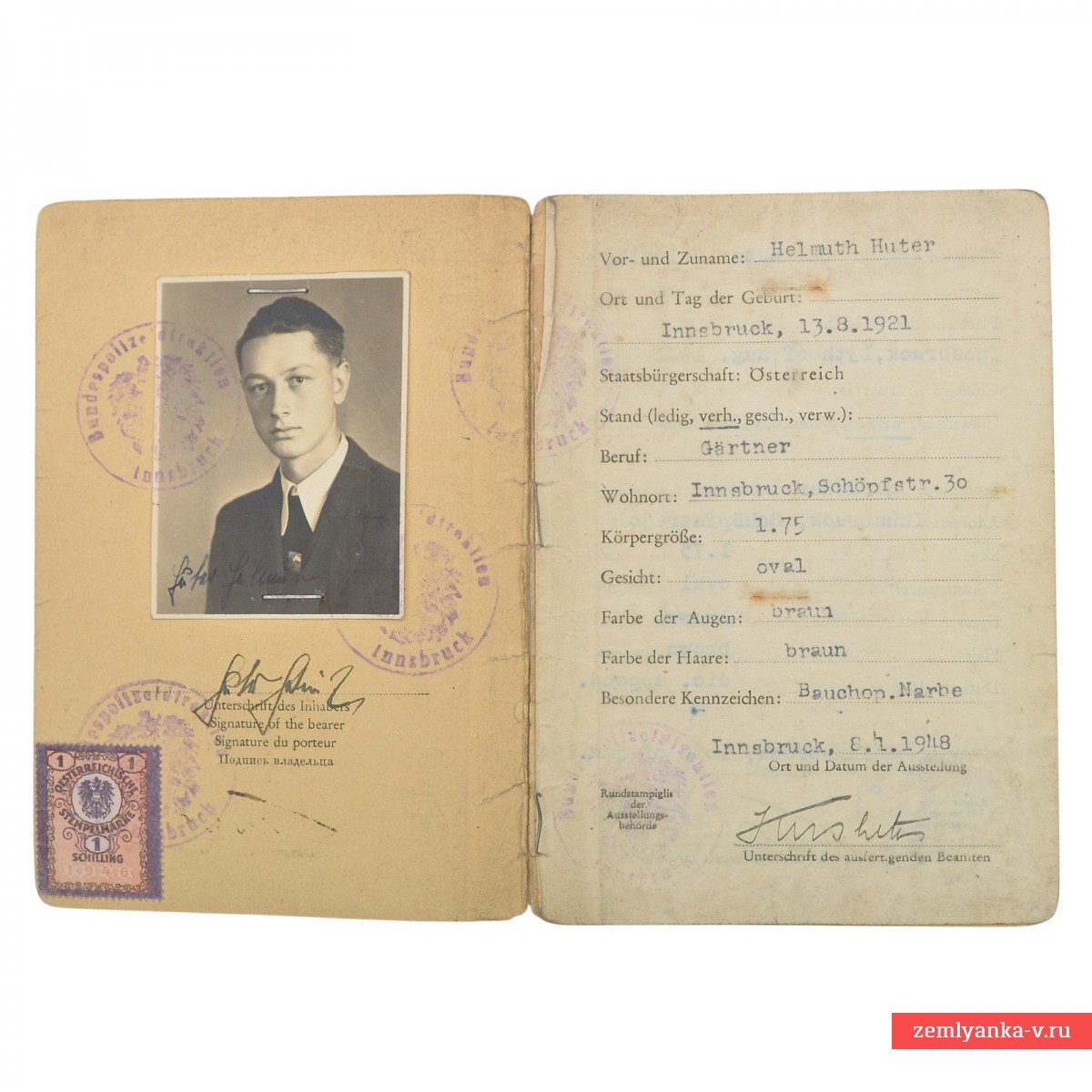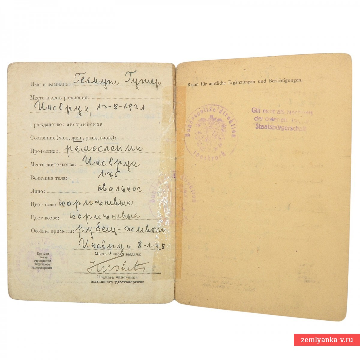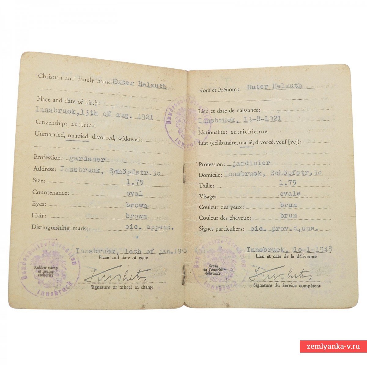Достаточно редкий документ в хорошем коллекционном состоянии. Заполнен на 4 языках, в том числе русском. Гарантия подлинности.