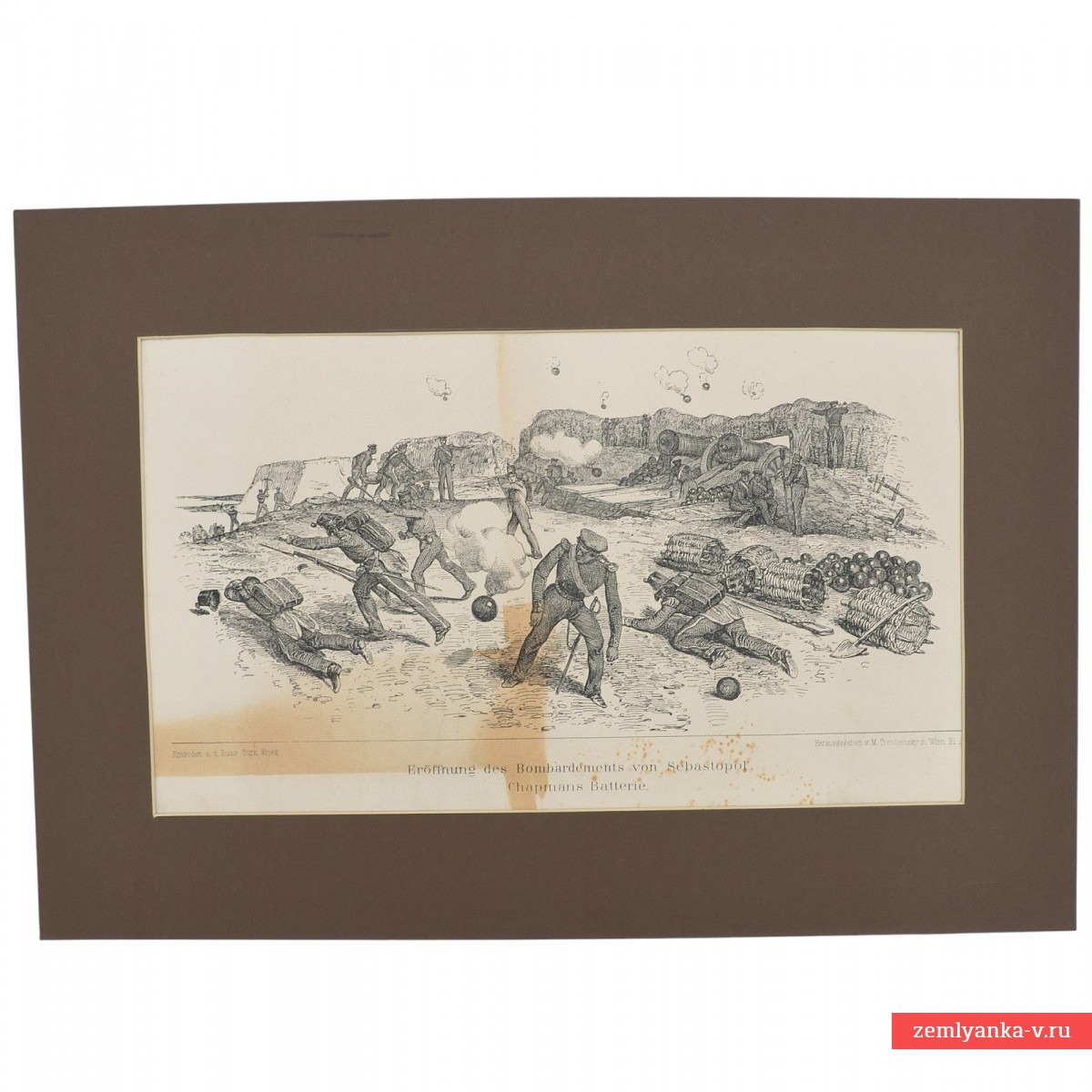 Оригинальная литография из серии «Эпизоды Русско-турецкой войны» в хорошем коллекционном состоянии. Размер листа 225*380 мм. Паспарту современное. Отпечатано в типографии «Herausgegeben v. M. Trentsensky» в Вене. Гарантия подлинности.