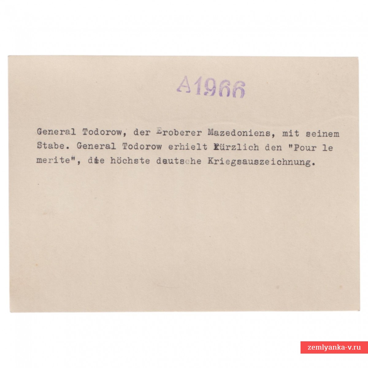 Оригинальный снимок в отличном коллекционном состоянии. На тыльной стороне отпечатано пояснение к событию на немецком языке: Генерал Тодоров, покоритель Македонии, со своим штабом. Генерал Тодоров вскоре был награждён орденом «Pour le Merite», высшей воинской наградой Германии. Исходя из описания, на лицевой стороне фотографии изображен сам генерал Тодоров (1858–1934 гг) вместе со своим штабом (офицерами). Во время Первой мировой войны Тодоров командовал 2-й болгарской армией. В ходе Овчепольской операции (1915 г.) его войска нанесли поражение сербским силам, что позволило Болгарии занять территорию Македонии. В тексте указано, что генерал недавно получил эту награду — высший военный орден Пруссии (Германии) того времени, также известный как «Голубой Макс». Тодоров был одним из немногих иностранных генералов, удостоенных этой чести за выдающееся командование войсками. Размеры: 16Х11,5 см. Гарантия подлинности.