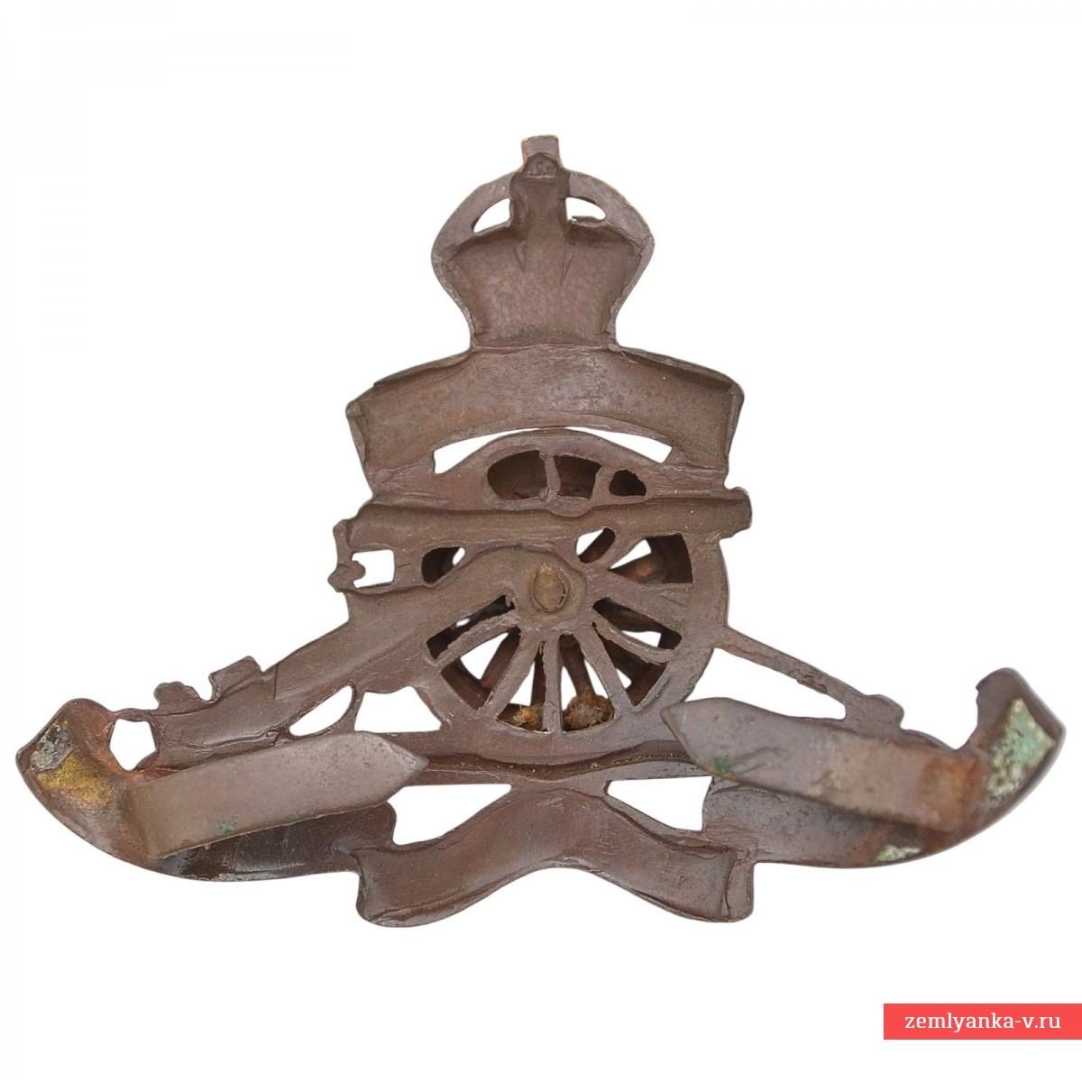 На кокарде изображена дульнозарядная пушка, увенчанная короной. Над пушкой на ленте расположен девиз «UBIQUE» (лат. «Везде»). Он отражает тот факт, что артиллеристы участвовали во всех кампаниях и боевых действиях Британской армии на протяжении более чем 300 лет. Девиз «QUO FAS ET GLORIA DUCUNT» под пушкой переводится как «Куда ведут право и слава». Размер 47*62 мм. Бронза, штамповка, патинирование. Прекрасное состояние. Кокарды данного типа использовались офицерами и нижними чинами Британской армии в период обеих мировых войн. Гарантия подлинности.