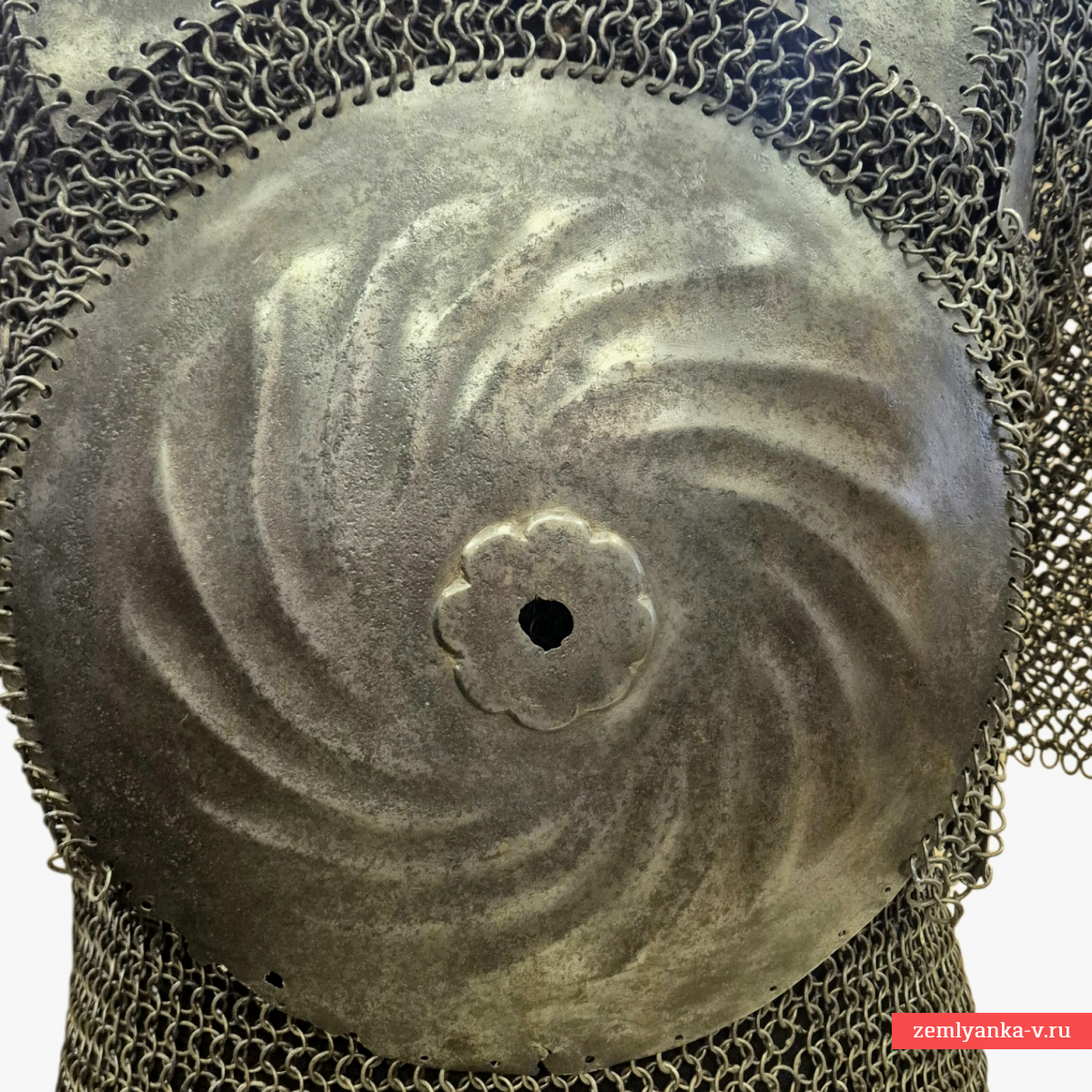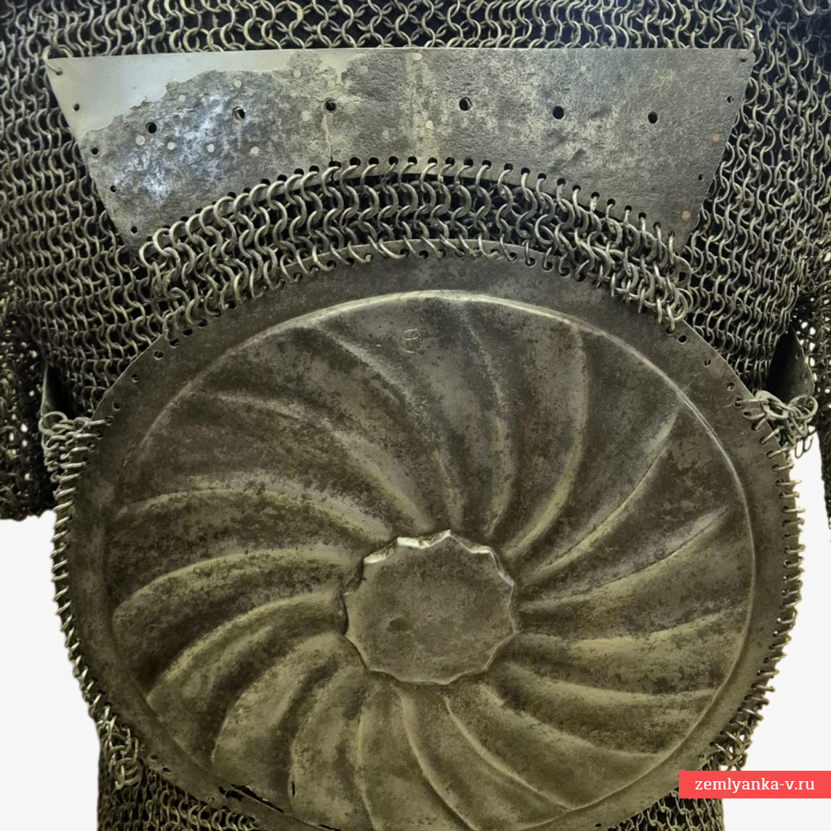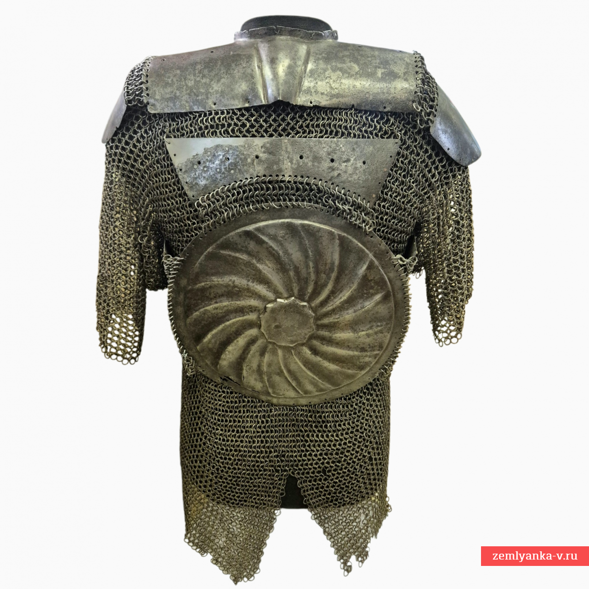 Оригинальный и крайне редкий османский доспех в прекрасном коллекционном состоянии. Клеймо мастера. С экспертизой института археологии. Значительная часть поверхности сохранила первоначальный металлический блеск, на отдельных участках присутствует окисление металла. Наличествуют небольшие потертости и помятости, свидетельствующие о длительном бытовании и не влияющие на первоначальный облик изделия. Спинная защитная пластина трапециевидной формы частично отреставрирована.