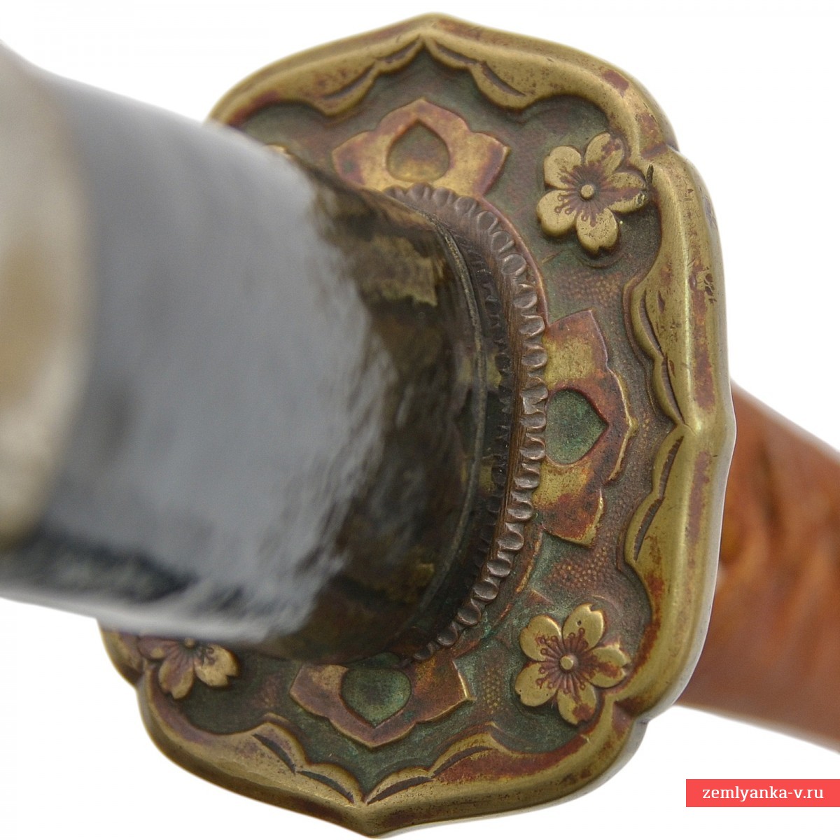 Прекрасный и достаточно редкий укороченный меч, использовавшийся в годы Второй Мировой офицерами танковых экипажей и летчиками. Клинок изготовлен в ранний период Эдо (начало – середина XVII века) стальной, незначительно изогнутый, однолезвийный, без долов, с ребром, смещенным от центра полотна. Клинок гендай (традиционной ковки). Хабаки медный. В хвостовике клинка одно отверстие «мэкуги-ана». На клинке хорошо видна линия закалки «хамон». Хвостовик клинка «мумэй» (без подписи мастера).