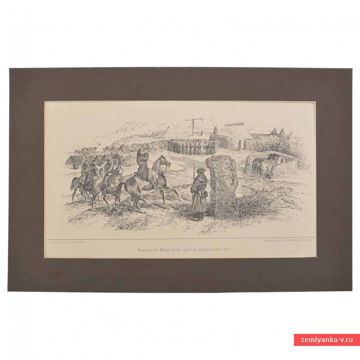 Оригинальная литография из серии «Эпизоды Русско-турецкой войны» в хорошем коллекционном состоянии. Размер листа 225*380 мм. Паспарту современное. Литография отпечатана в типографии «Herausgegeben v. M. Trentsensky» в Вене. Частично раскрашена. Гарантия подлинности.