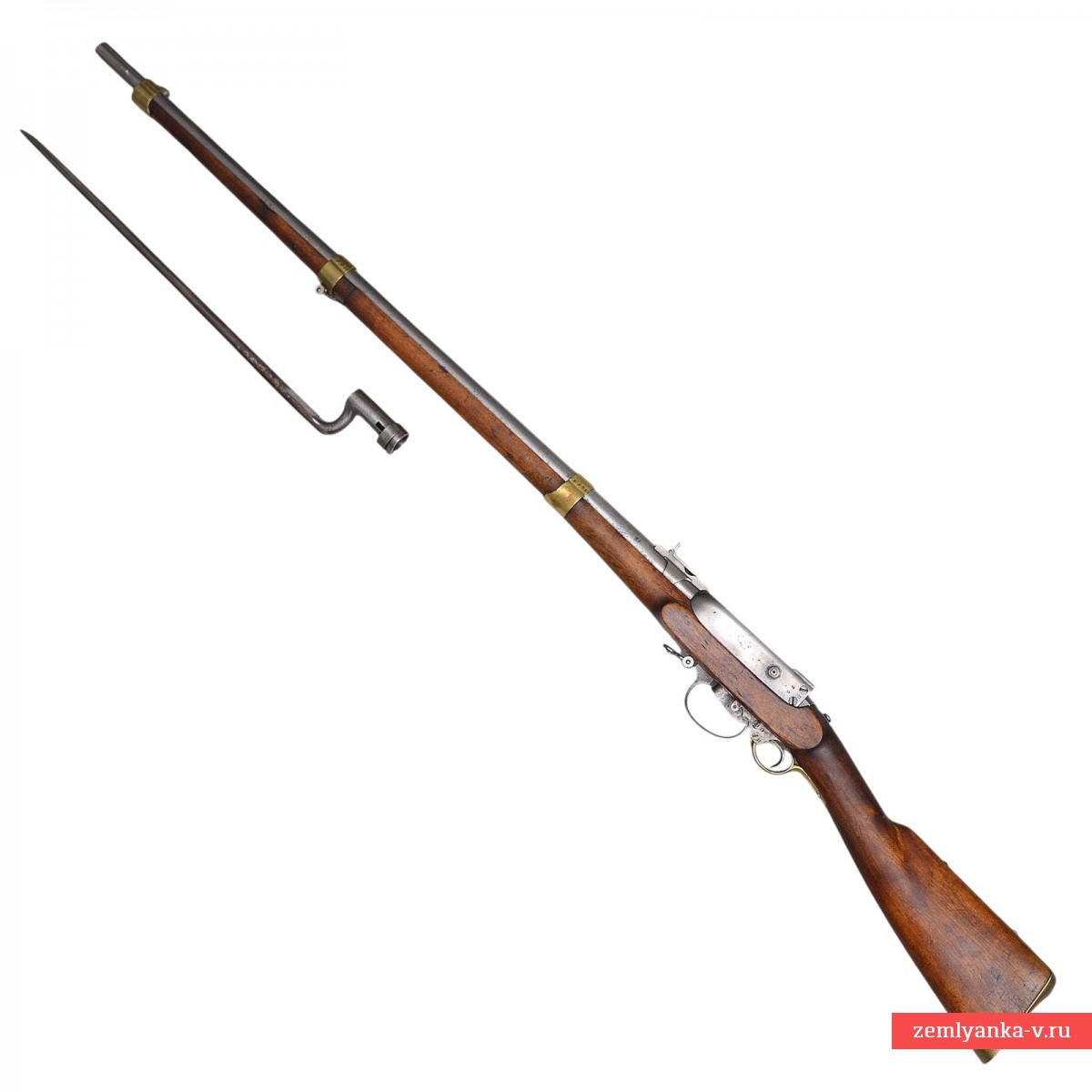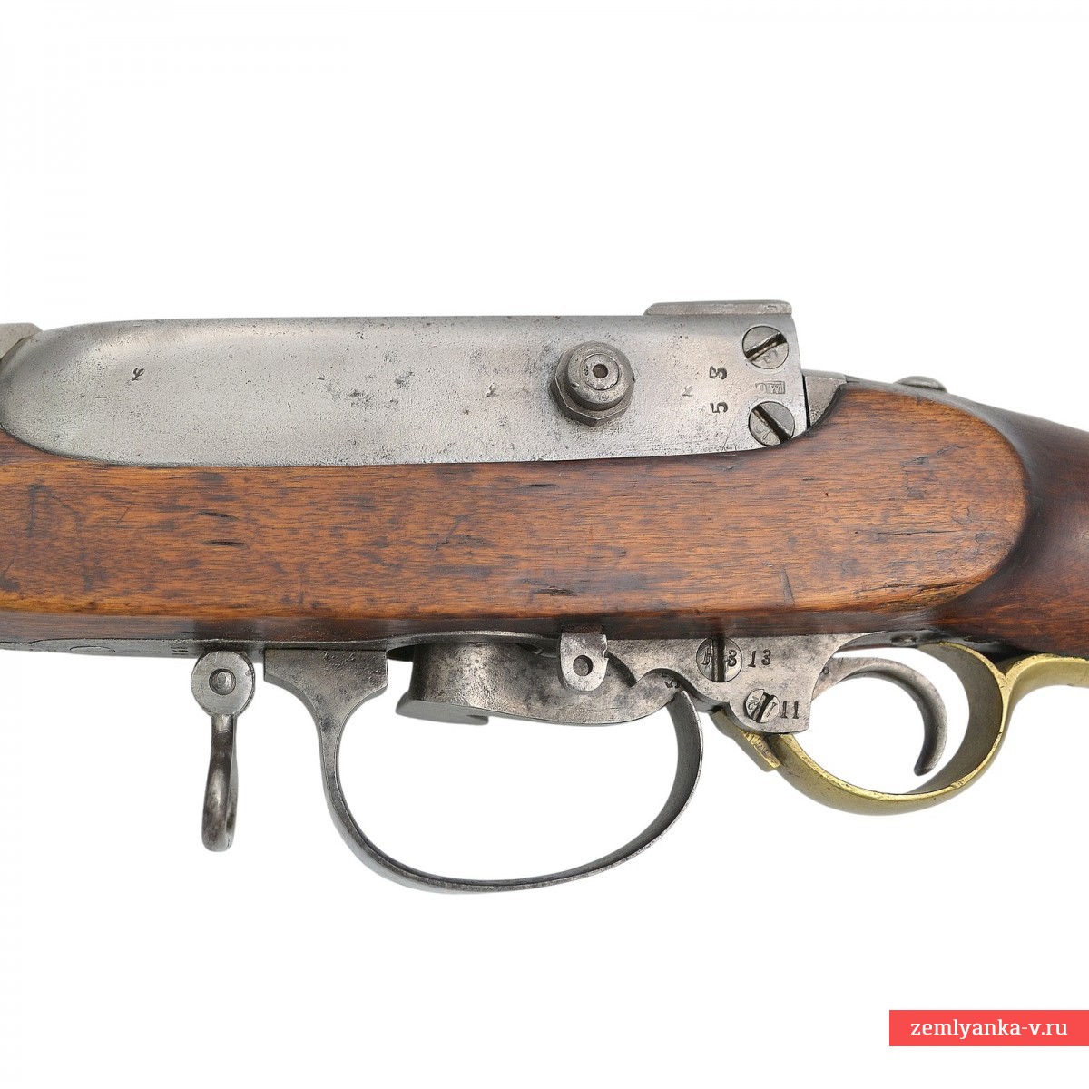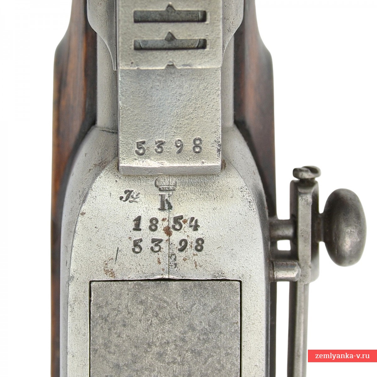 Оригинальная и крайне редкая капсюльная винтовка, изготовленная в 1854 году. Большинство этих винтовок были либо переделаны под малокалиберное оружие, либо переплавлены, поэтому найти их в любом состоянии — настоящая находка. «Kammerlader», или «каморнозарядное», было первой норвежской казнозарядной винтовкой и одной из первых казнозарядных винтовок, принятых на вооружение вооружёнными силами мира. Каммерладер — однозарядная винтовка, работающая на чёрном порохе, — приводился в действие рукояткой, расположенной сбоку ствольной коробки. Это значительно ускоряло и упрощало заряжание по сравнению с ранее использовавшимся оружием, фактически исключая необходимость досылания патрона, позволяя каморе откидываться. Каммерладеры быстро завоевали репутацию скорострельных и точных винтовок, которые могли бы стать смертоносным оружием против густых рядов пехоты. Эта пехотная винтовка с ударниковым механизмом, заряжаемая с казённой части, была разработана в 1842 году офицером Шеель и оружейником Грегерсеном. Она оснащена рукояткой с правой стороны, которая сначала отцепляет патронник, а затем поворачивает его вертикально для заряжания. Курок ударного механизма находится под затвором перед спусковым крючком, а массивная боевая пружина также служит предохранительной скобой перед существующей спусковой скобой. Первоначально эти винтовки выпускались в калибре 18 лёдиг (17,5 мм), но затем были внесены многочисленные изменения, в результате которых калибр в конечном итоге был уменьшен до 4 линей, или 11,77 мм. Вся на одном номере В комплекте оригинальный штык. На верхней части патронника выбита корона над буквой K и дата 1854 над серийным номером 5398. Винтовка имела оригинальную конструкцию, но в конечном итоге была заменена в норвежской армии винтовкой Remington Rolling block 1867 года. Эти устаревшие винтовки были распространены в основном среди норвежцев как охотничьи, поэтому мало какие из них сохранились в первозданном виде, как эта.