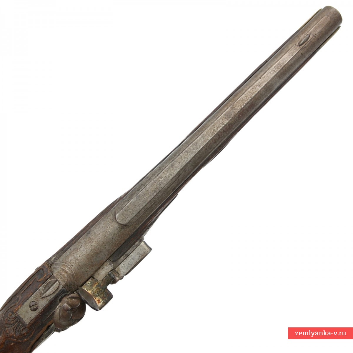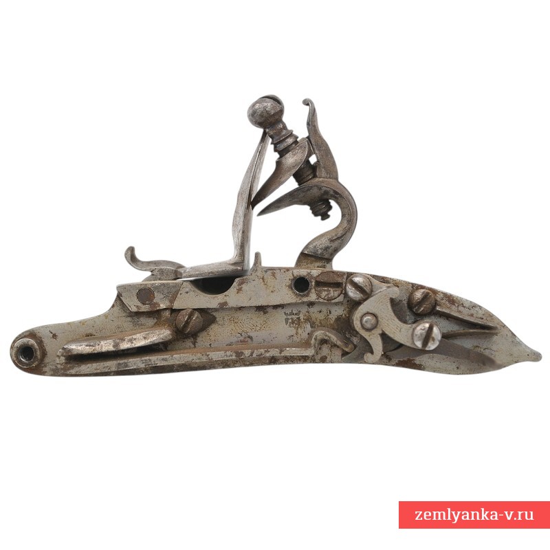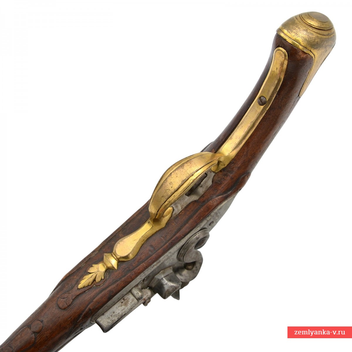 Крайне редкие массивные кавалерийские пистолеты в очень хорошем коллекционном состоянии. Об офицерской принадлежности оружия говорит наличие позолоты на всех латунных частях. Пистолеты снабжены кремневыми замками батарейного типа, установленными в правых частях оружия. В некоторых источниках его называют французский замок, или замок французского типа (образца) из-за того, что его изобретателем считается французский королевский художник и оружейник Марэн ле Буржуа (Marin le Bourgeoys 1550 – 1634) из Нормандского городка Лизье. Изобретатель удачно объединил положительные черты средиземноморского и балтийского замков в единую конструкцию. Замочные доски стальные, гладкие. На каждой доске иглой нанесена надпись «Rosenberg Orebro» в две строки. Согласно справочнику Штокеля, данное клеймо принадлежит Иокиму Розенбергу (.. – 1745 гг) — сыну известного немецкого мастера Юргена Розенберга (1677-1724 гг), работавшему в Штральзунде, Мекленбург. В 1709 году стал полноправным гражданином (бюргером). В период с 1716 по 1725 гг Иоким работал в г. Эребру (Швеция) в качестве оружейного мастера по военным заказам армии Карла XII, что дает возможность точно датировать представленную пару пистолетов эпохой Северной войны. На внутренней стороне замков пробито инспекторское (?) клеймо в виде короны. Ложи деревянные, цевье на всю длину ствола. В цевье вложены деревянные шомполы. Пистолеты всегда приобретались парами и носились в седельных сумах, т.н. «ольстрах». Пример подобного ношения можно видеть на портрете Карла XII в ленте лота. Редкость музейного уровня, настоящая находка для любой частной или музейной коллекции, посвященной Северной войне или Петру I.