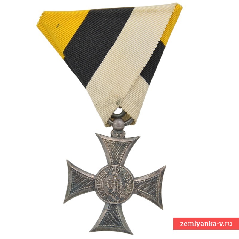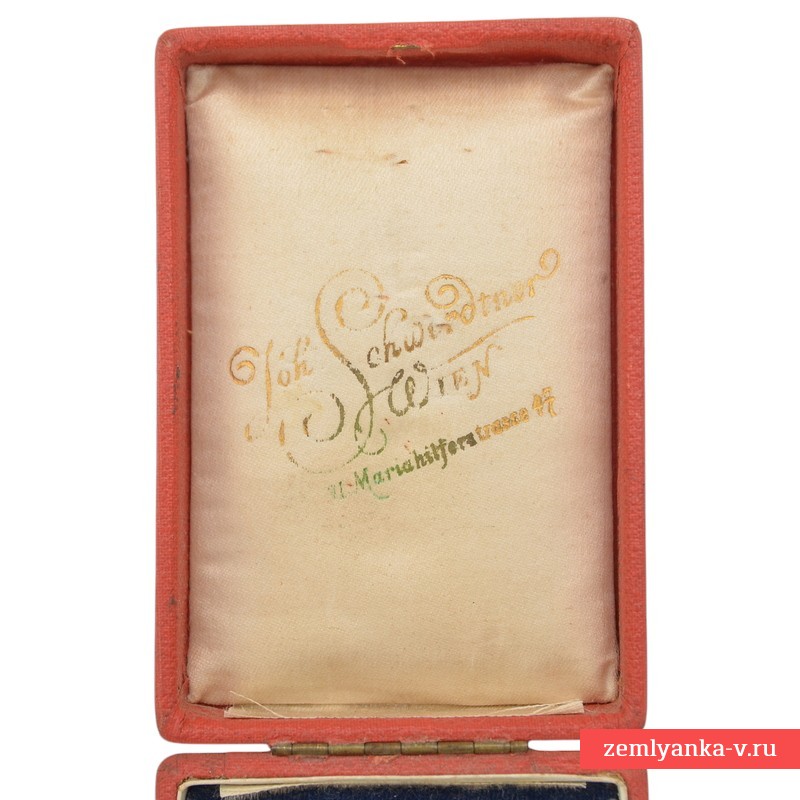 Оригинальный крест в отличном коллекционном состоянии. Серебро, штамповка, патинирование, полировка. Австрийские клейма серебра на кольце. Клеймо производителя на коробке: Johann Schwerdtner, Wien VI, Mariahilferstrasse 47. Крест на оригинальной колодке. В комплекте оригинальный футляр. Редкий вариант австрийского производства. Награда выполнена в форме равноконечного креста с ушком, промежуточным кольцом, подвесом и лентой с крепежной системой. По центру аверса монограмма царя Бориса (годы правления 1918-1943 гг.) 3 состоящая из буквы «Б», увенчанной короной, римской цифры «III», по окружности надпись на болгарском языке «ОТЛИЧНА СЛУЖБА („ОТЛИЧНАЯ СЛУЖБА“, болг.) с ограничителями в виде пятиконечных звезд между словами. Ниже нанесена римская цифра «Х». По центру реверса изображение коронованного льва на приподнятых лапах — герба Болгарии. Размеры креста: 33,5Х33,5 мм. Гарантия подлинности.