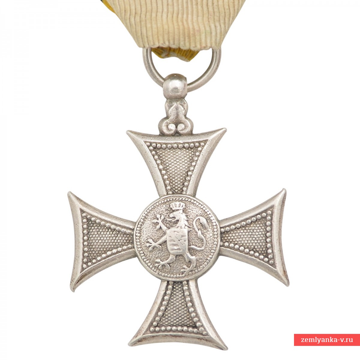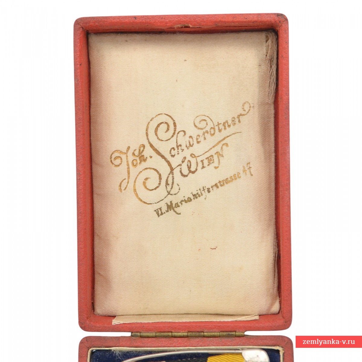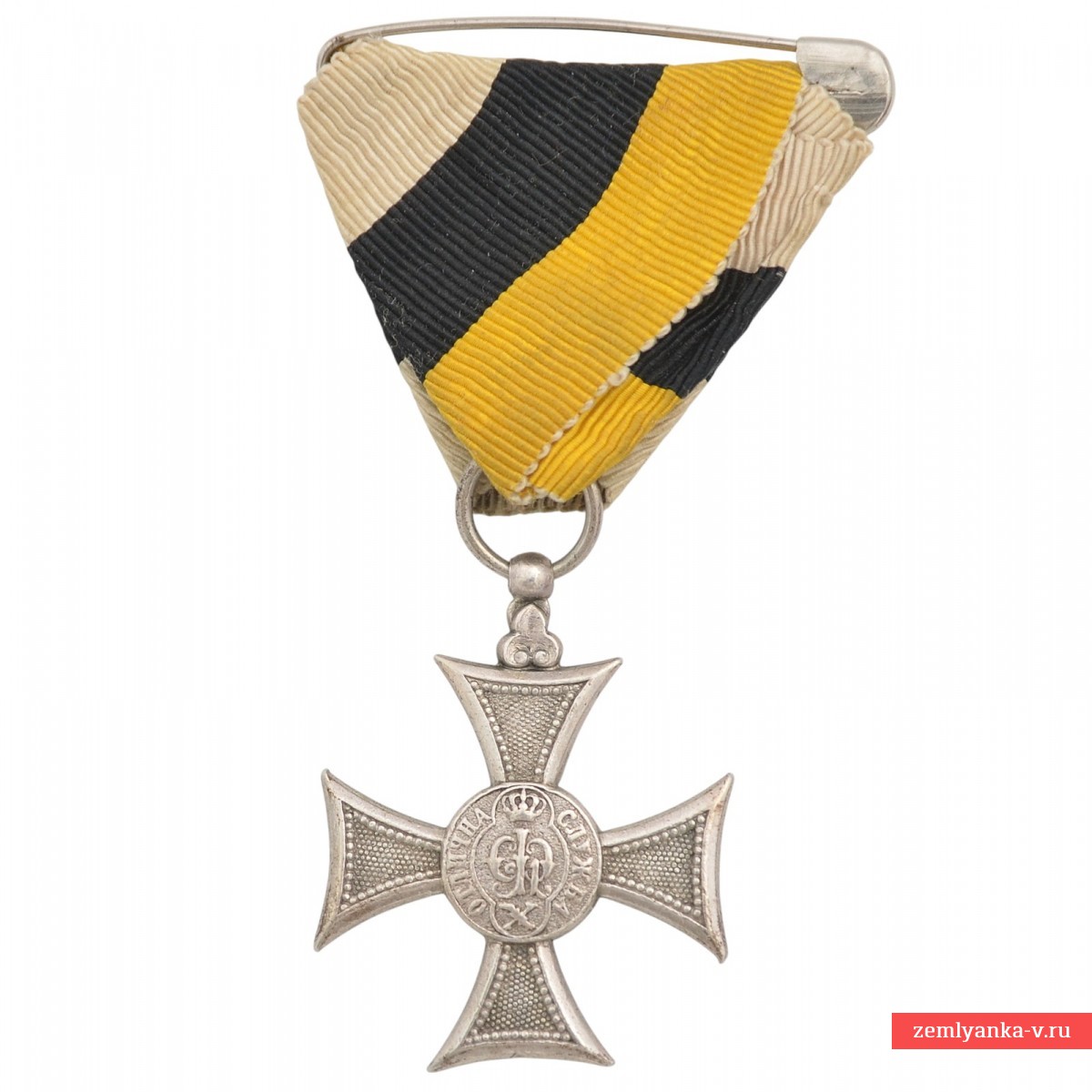 Самый редкий крест За выслугу лет для офицеров периода правления князя Фердинанда I, тип «Ананас». Серебро, литьё, серебрение, крест спаян из двух половинок, ушко припаяно отдельным элементом. На оригинальной ленте с булавкой. В оригинальном футляре. Под крышкой футляра клейма австрийского производителя наград: Johann Schwerdtner, Wien VI. Mariahilferstrasse 47. Отличное коллекционное состояние. Гарантия подлинности.