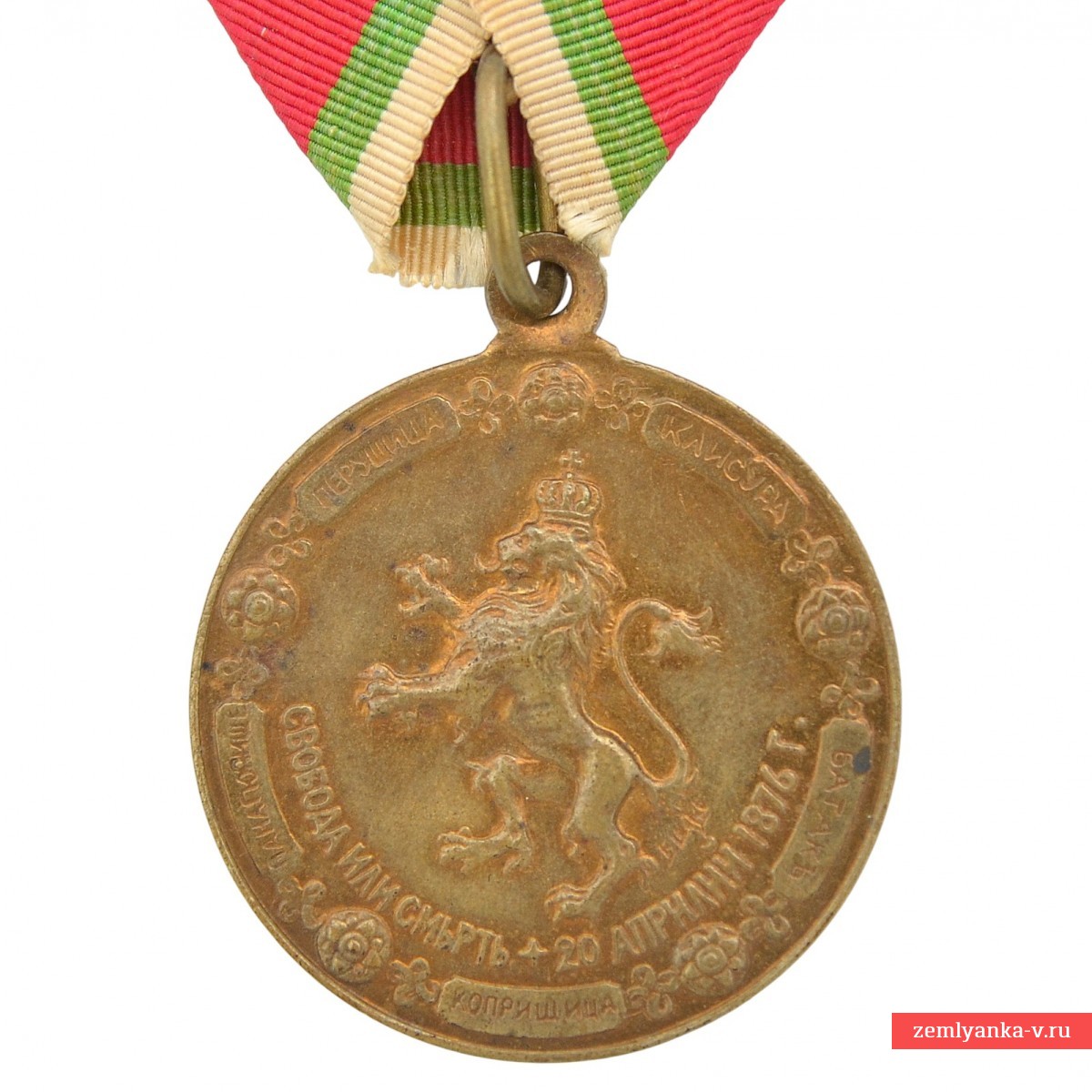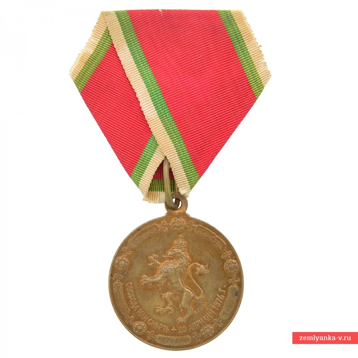 Оригинальная медаль в отличном коллекционном состоянии. Бронза, шелк (муар); штамповка. Диаметр 34,5 мм. Первая болгарская медаль произведённая в Болгарии. Медалью награждались в 1901 году выжившие участники восстания 1876 года. Денков В. Българските ордени, знаци и медали. Каталог. София, 2011. # 915. Учреждена 19 апреля 1901 г. Апрельское восстание — национально-освободительное восстание в Болгарии 18 апреля –23 мая 1876 г., жестоко подавленное турецкими войсками. Очень редкая. Гарантия подлинности.