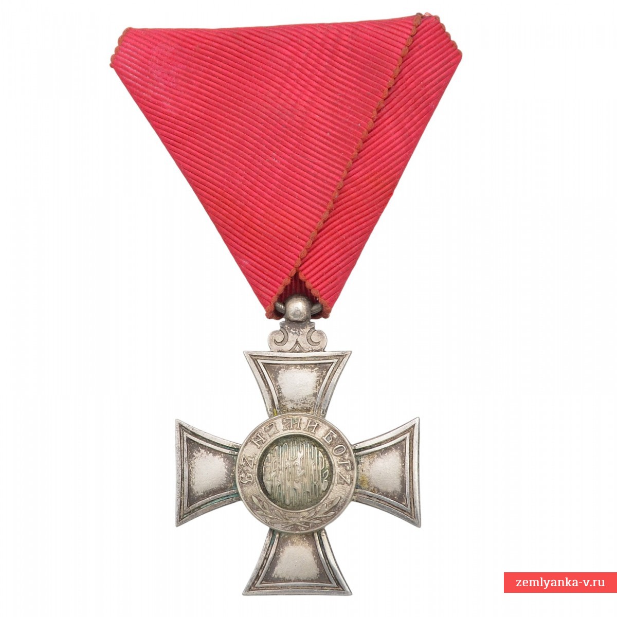 Оригинальный орден в отличном коллекционном состоянии. Серебро, штамповка, матовое серебрение, полировка. Центральный медальон — накладной элемент. Вариант цельноштампованного креста. На оригинальной ленте. Гарантия подлинности.