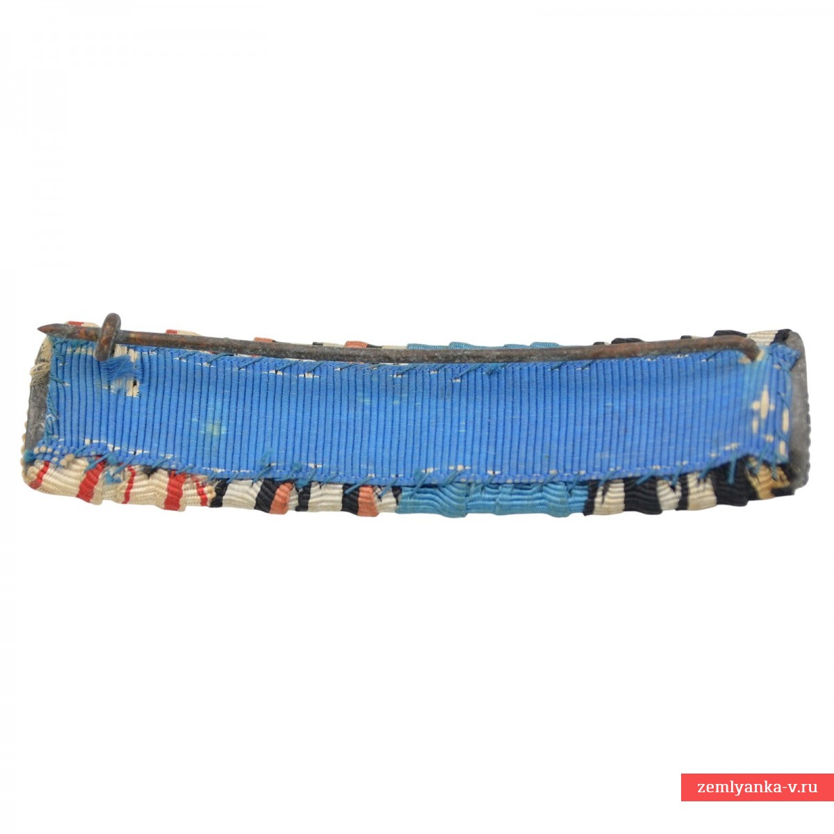 Оригинальная и достаточно редкая фельдшпанга в хорошем коллекционном состоянии. Включает в себя ленты четырех наград: немецкого Железного креста 2 класса образца 1914 года, австрийского креста Почетного легиона, немецкого креста ветерана ПМВ, т.н. «креста Гинденбурга» и австрийской медали участника Первой Мировой. Гарантия подлинности.