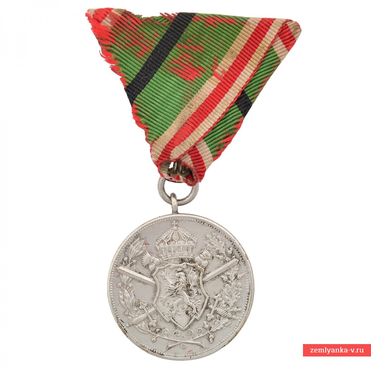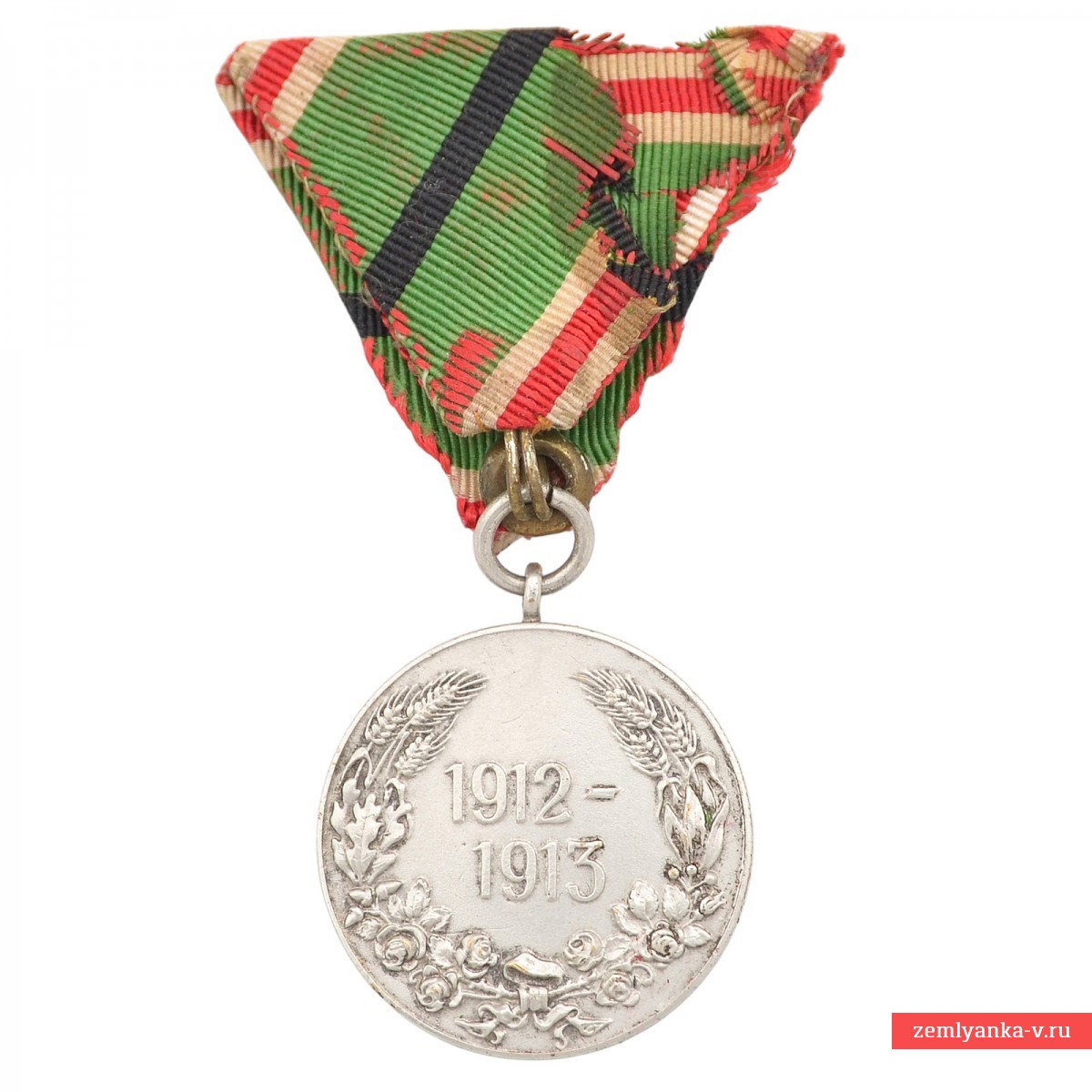 Бронза, серебрение. Оригинальная медаль в отличном состоянии. С очень редким оригинальным документом, врученным семье погибшего на Первой Балканской войне. Документ выдан на рядового Стефана Иванова. На реверсе пометка: Госпоже жене Стефана Иванова, София и домашний адрес. Колодка медали с небольшими утратами. Размеры документа: 47,5Х34 см. Гарантия подлинности.