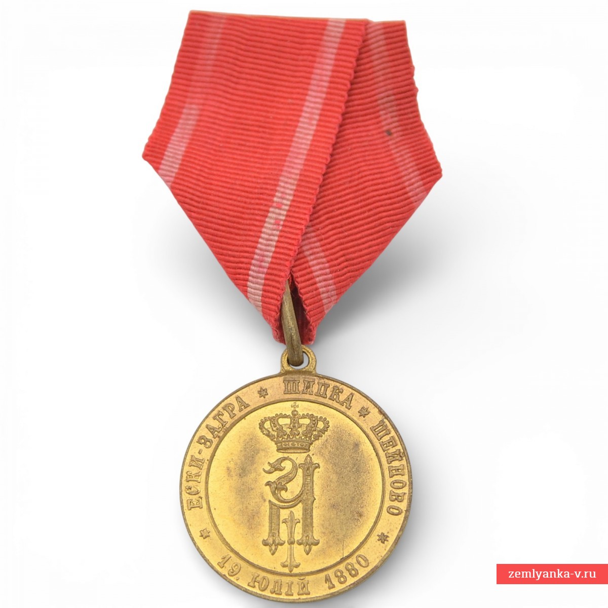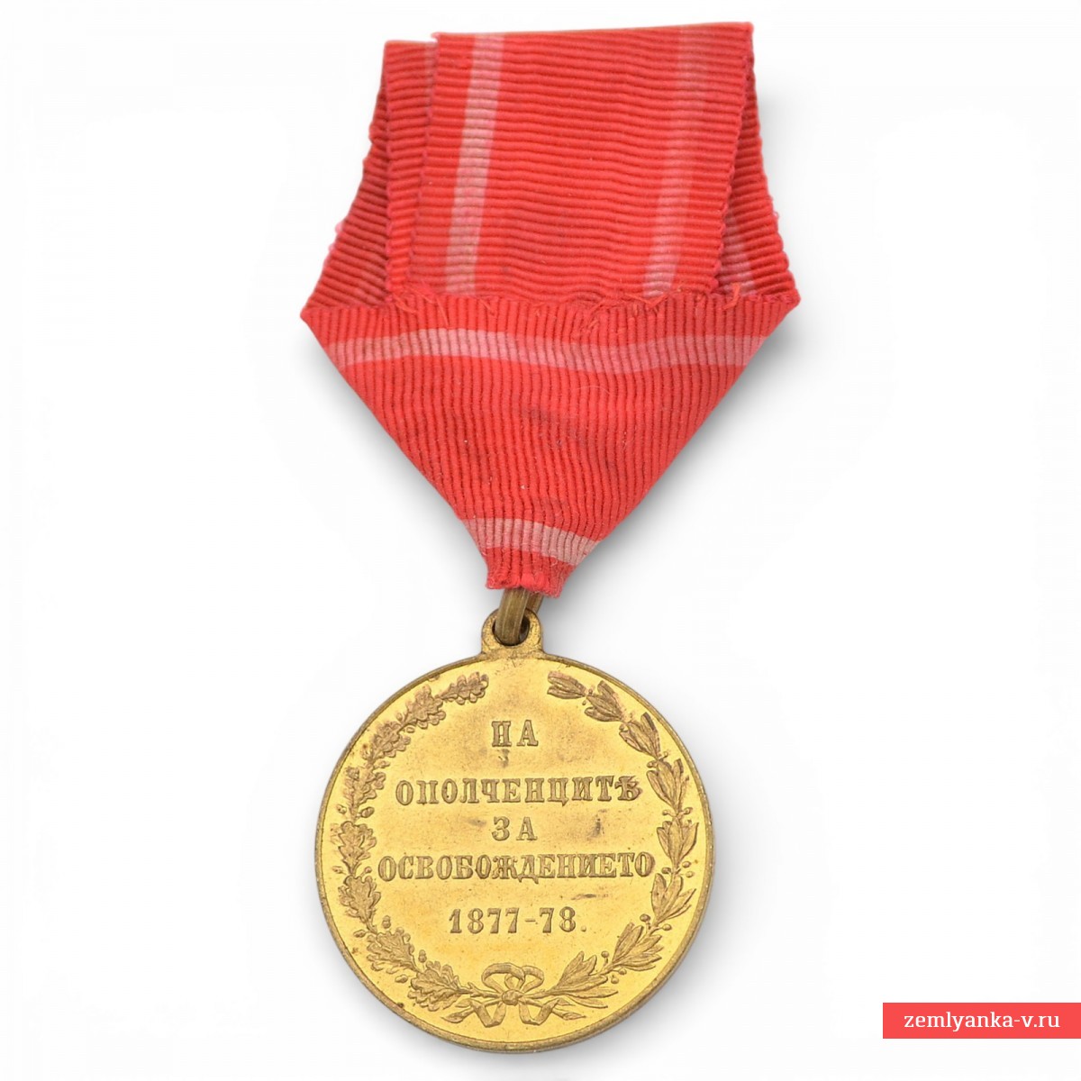 Бронза, золочение, штамповка. Остатки штемпельного блеска. В центре аверса изображен вензель князя Александра I под княжеской короной. По окружности расположены надписи, обозначающие места ключевых сражений и дату: ЕСКИ-ЗАГРА (Стара-Загора), ШИПКА, ШЕЙНОВО, 19 ЮЛIЙ 1880 (дата учреждения медали). На оборотной стороне медали обычно располагается надпись на болгарском языке: «НА ОПЪЛЧЕНЦИТѢ ЗА ОСВОБОЖДЕНИЕТО 1877–1878» (Ополченцам за освобождение 1877–1878). Учреждена 19 июля 1880 года. Вручалась болгарским ополченцам, принимавшим участие в Русско-турецкой войне 1877–1878 годов. Очень редкая. Гарантия подлинности.