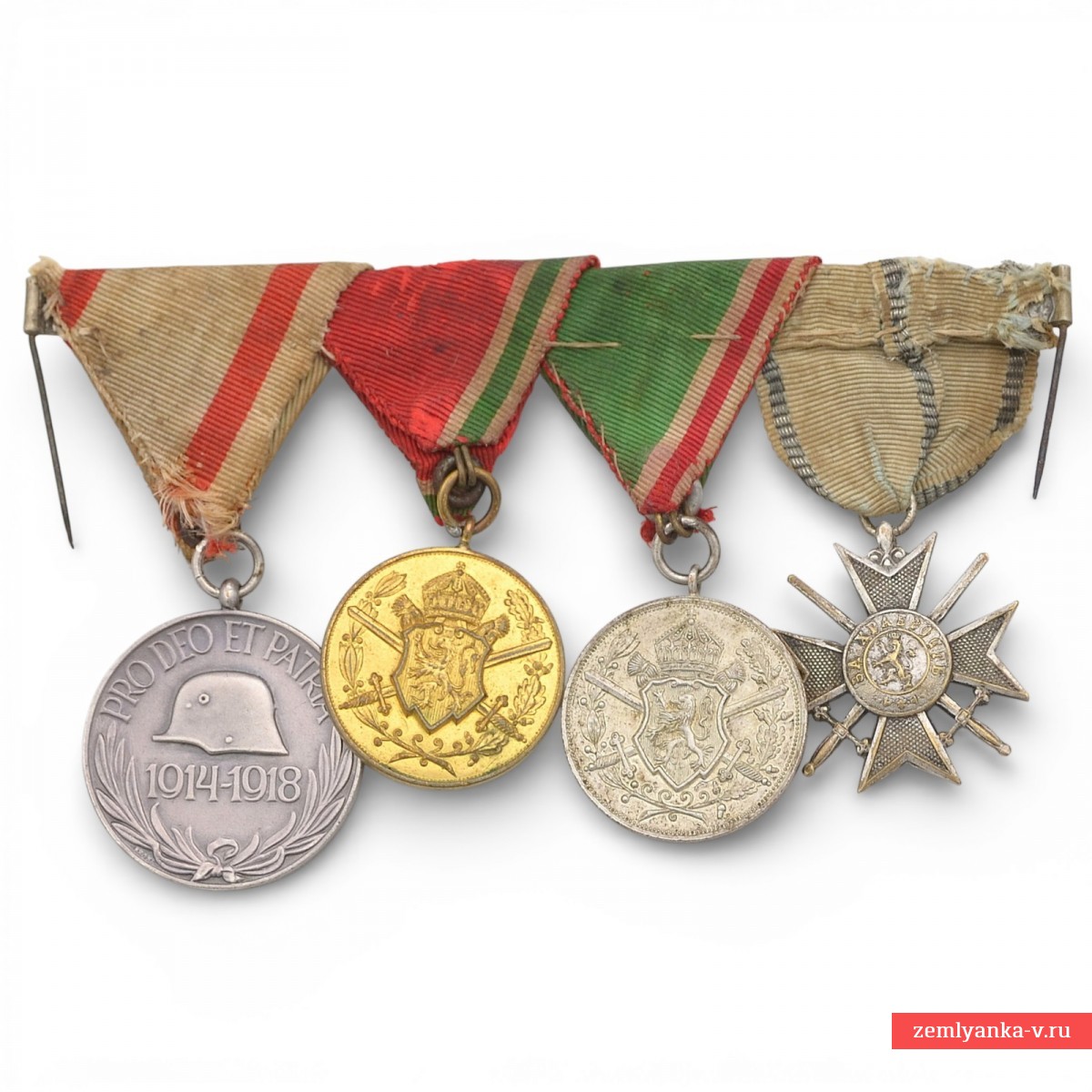 Оригинальная и достаточно редкая колодка в очень хорошем состоянии. На 4 награды, включая ранний вариант солдатского креста «За храбрость» 4 ст. Гарантия подлинности.