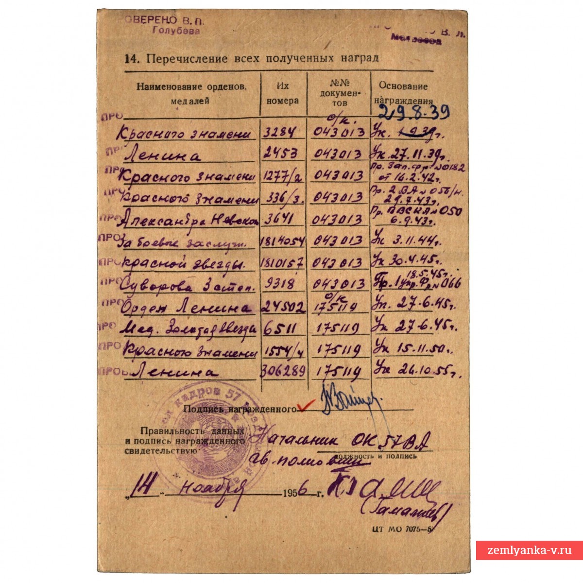Был награждён тремя орденами Ленина, четырьмя орденами Красного Знамени, орденами Суворова 3-й степени, Александра Невского, Красной Звезды, рядом медалей.