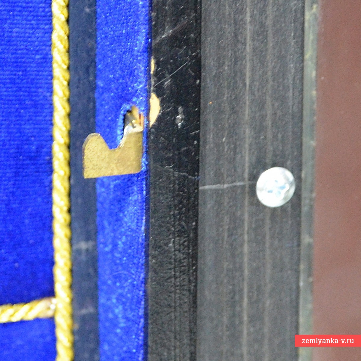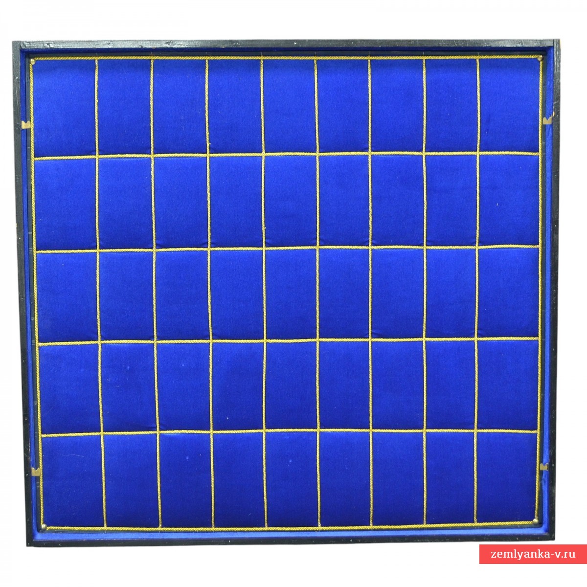 Дерево, бархат, фанера, золотой металлизированный шнур. Прекрасно выполненная витрина, в которой могут быть размещены практически любые виды наград. Переднее стекло выполнено быстросъемным. Размер 690*650 мм. В наличии только 1 шт.