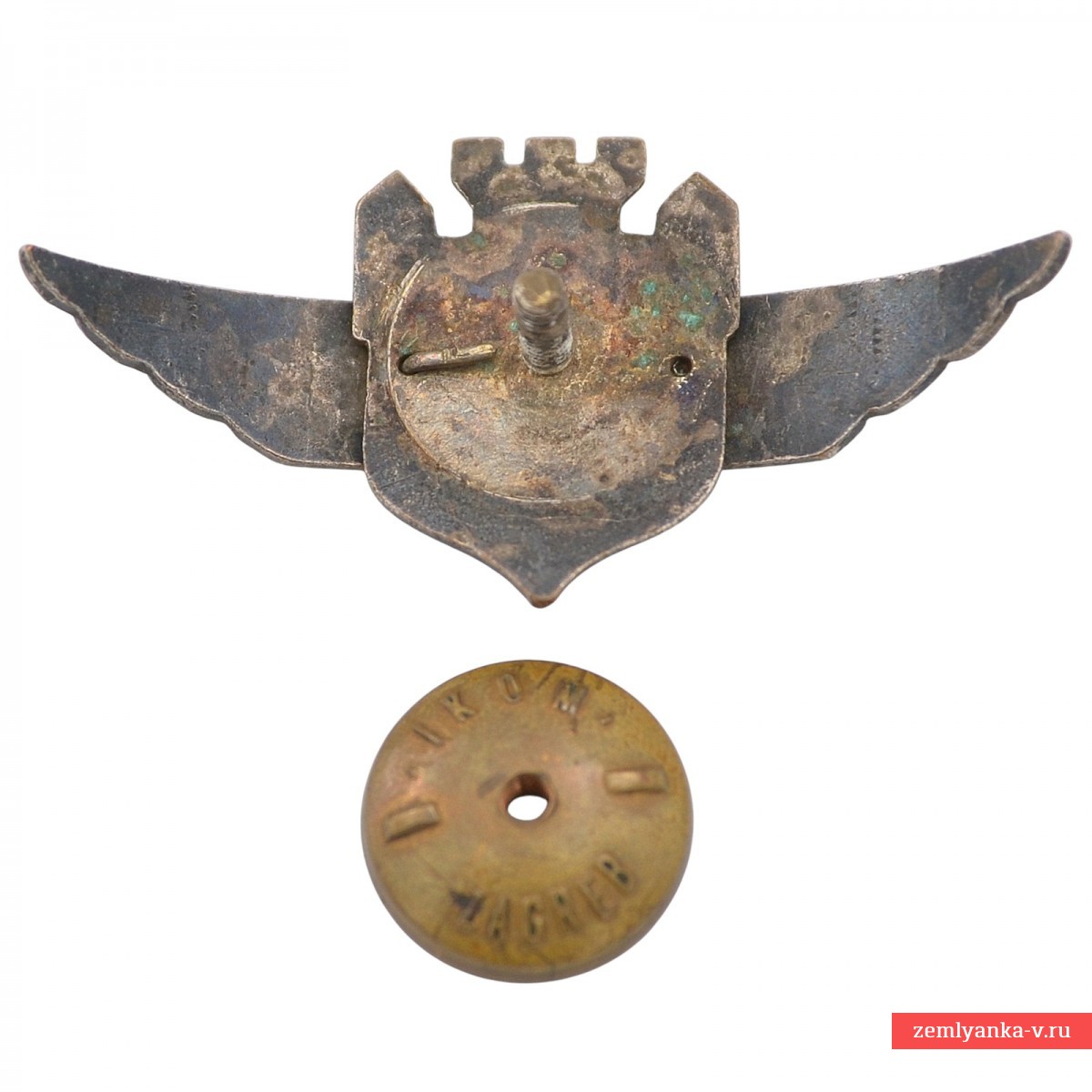 Тяжелый металл, серебрение, эмаль, штамповка. Оригинальный и достаточно редкий знак в удовлетворительном состоянии. Одна заклепка, удерживающая центральный медальон, утрачена. В комплекте оригинальная закрутка. Гарантия подлинности.