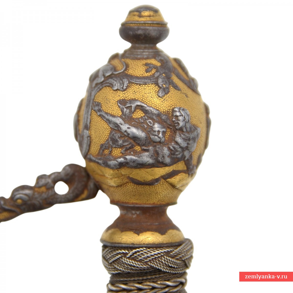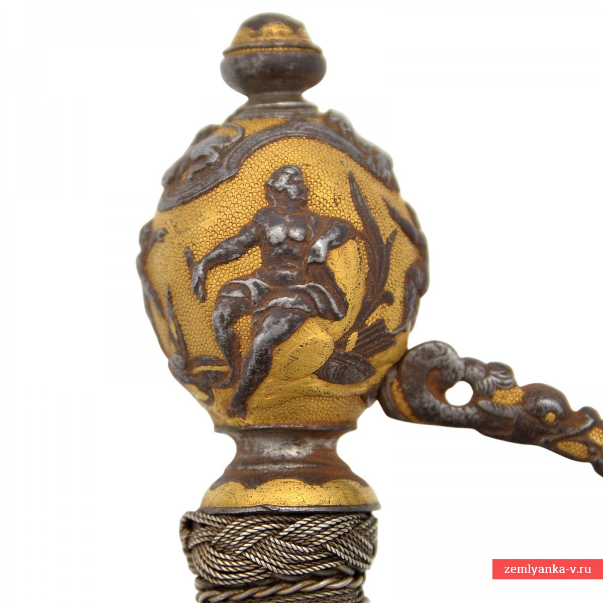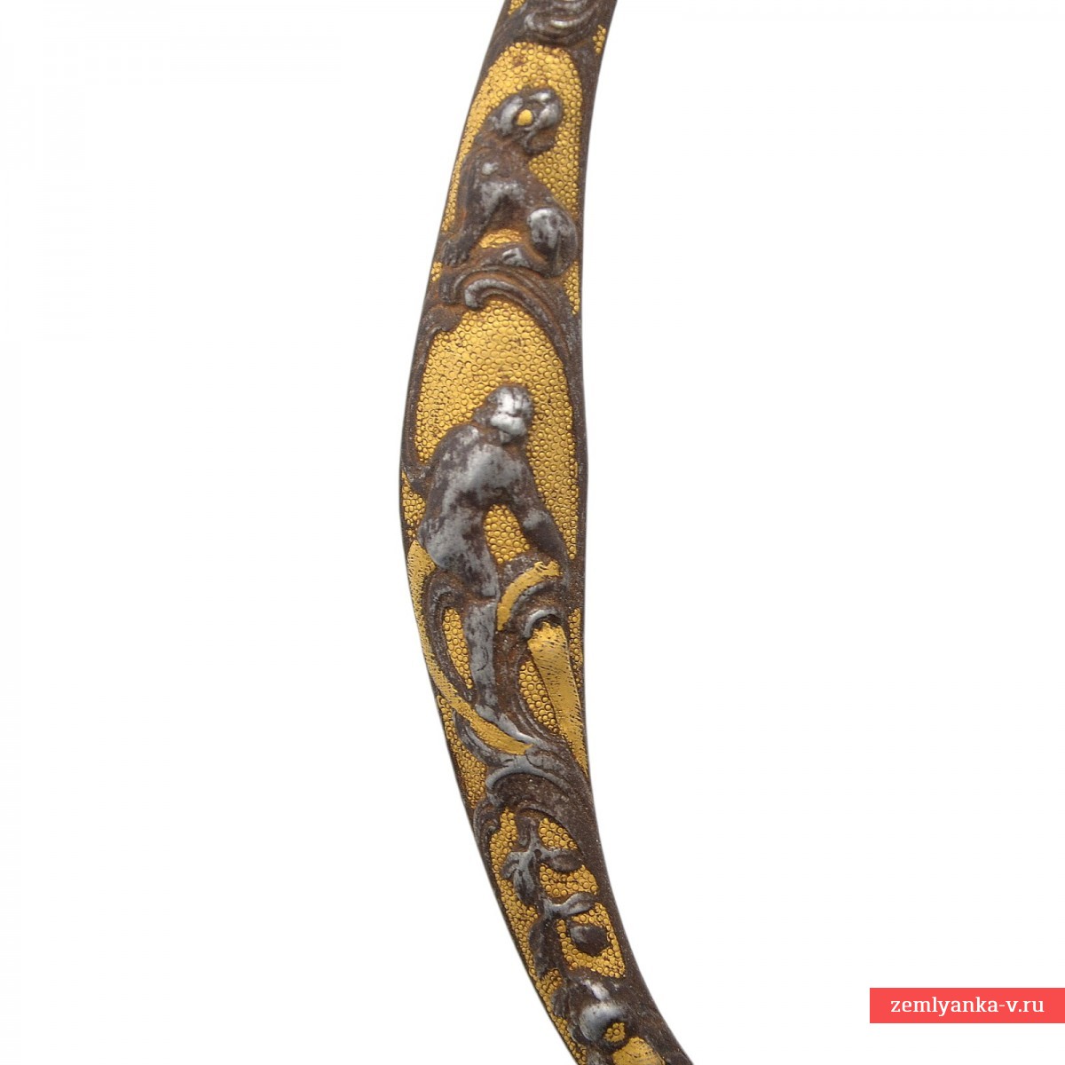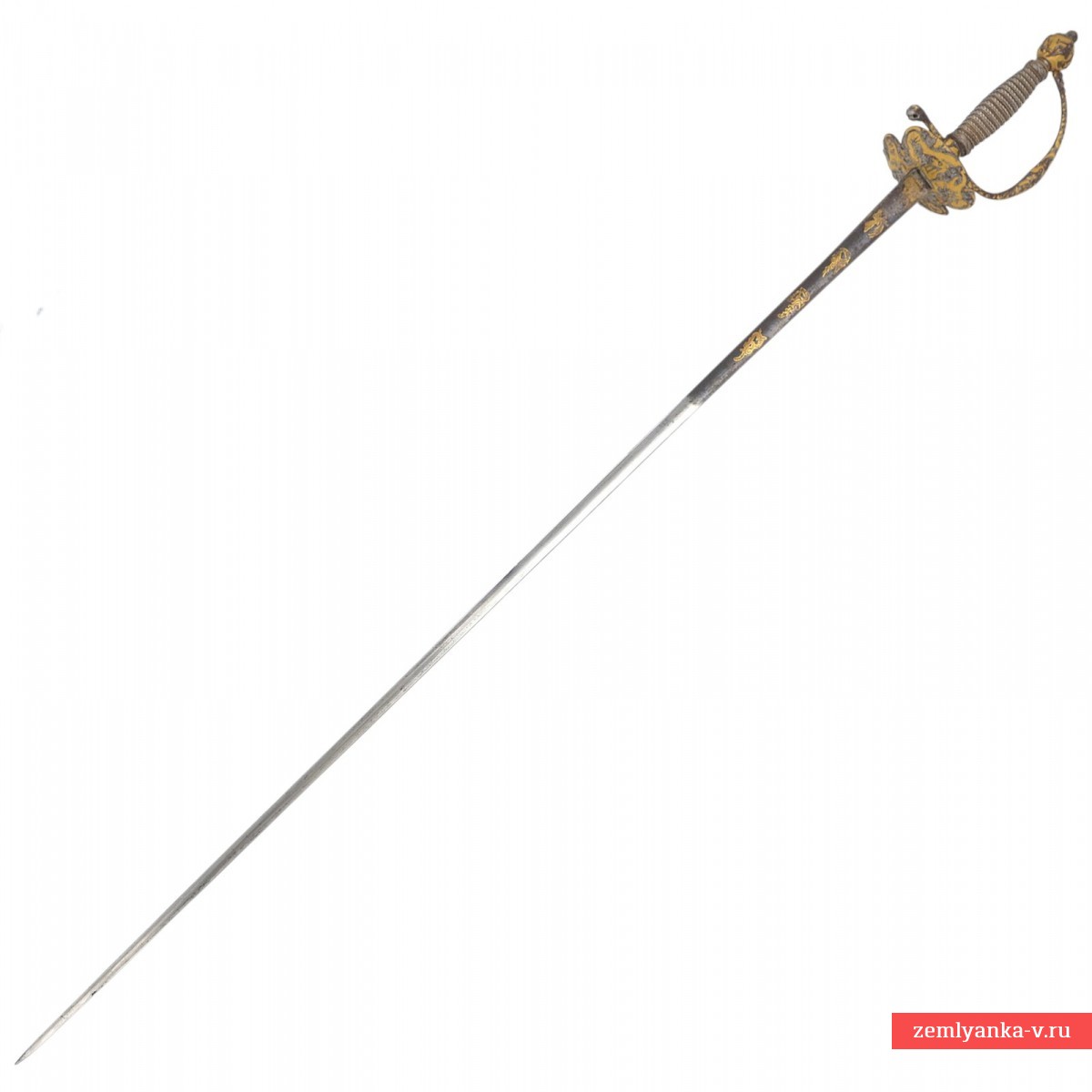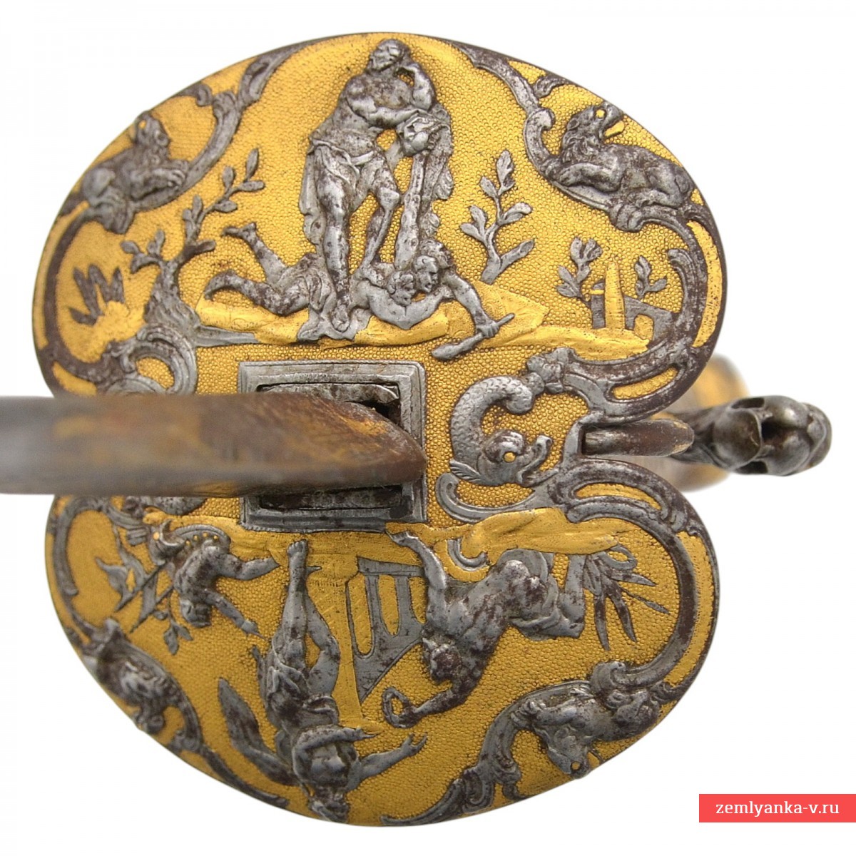 Представленный предмет - это прекрасный образец так называемых мундирных шпаг. Такие изящные шпаги во второй половине XVIII века носились с гражданской одеждой, являясь обязательным и модным аксессуаром, показателем высокого общественного положения владельца. Зачастую такие шпаги называют «small sword», обращая тем самым внимание на легкость и удобство ее ношения. Подобные шпаги редко применялись в качестве самозащиты или дуэльного оружия, но представляют, как правило, замечательные образцы оружейного искусства. Над их оформлением трудились художники и декораторы, которые стремились следовать модным тенденциям в искусстве. Законодателем моды в XVIII веке являлась Франция, и практически все оружейники Европы испытывали огромное влияние французского искусства. Это проявилось не только в использовании орнаментальных сюжетов ведущих художественных стилей барокко, рококо, неоклассицизма, но и в применении особых оформительских техник.