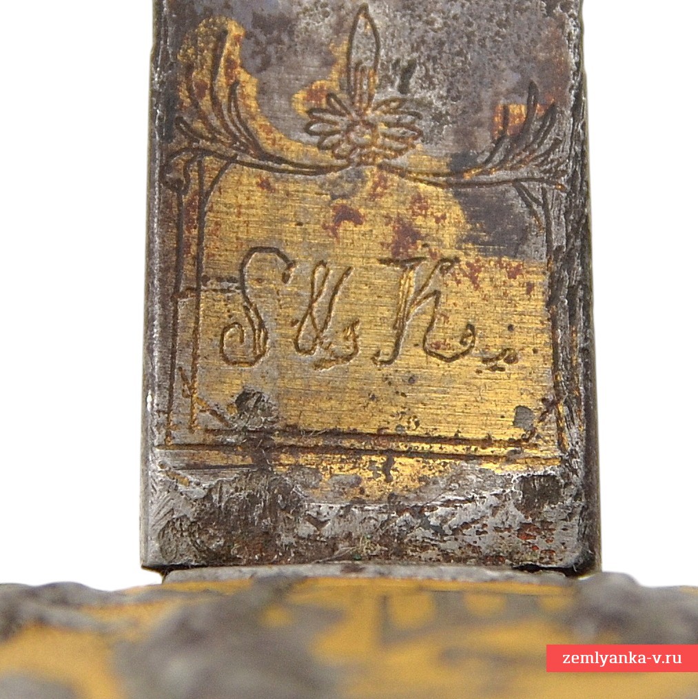 На основании клинка нанесены литеры «S & K» — клеймо немецкой фирмы «Шнитцлер и Киршбаум», Золинген. Данная фирма была основана в 1759 году Филиппом Якобом Шнитцлером (Philipp Jakob Schnitzler) в городе Grafrath, в 1787 году фирма объединилась с предприятием Вильгельма Киршбаума (Wilhelm B. S. Kirschbaum). После смерти Вильгельма в 1811 году его сыновья Август и Альберт перенесли производство в Золинген. Фирма просуществовала до 1864 года.