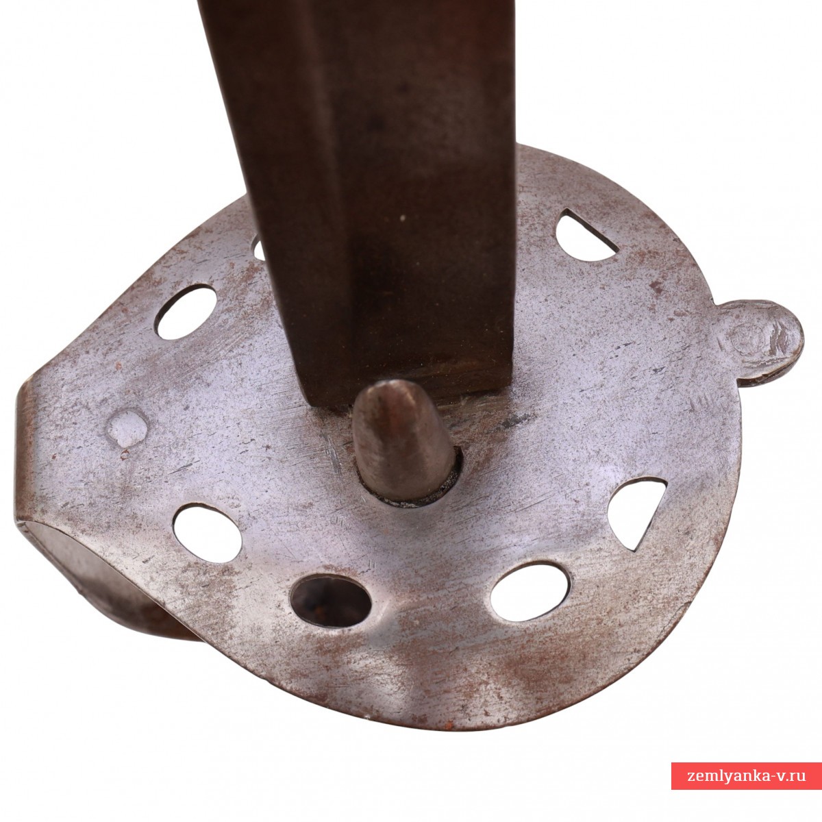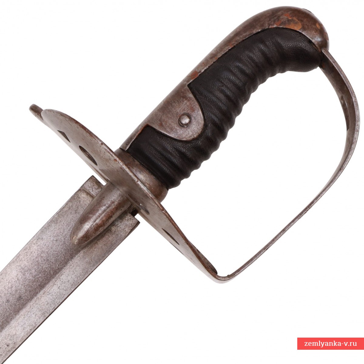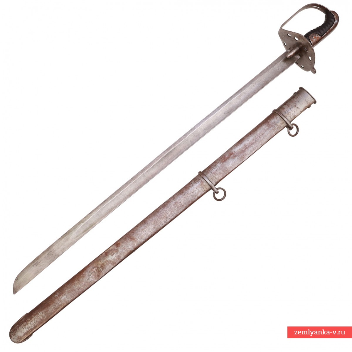 Предмет находится в хорошем коллекционном состоянии. Незначительные поверхностные следы коррозии на клинке, стальных деталях эфеса и ножнах. Несколько зазубрин на клинке. Вмятины на ножнах. Кожа рукояти заменена.