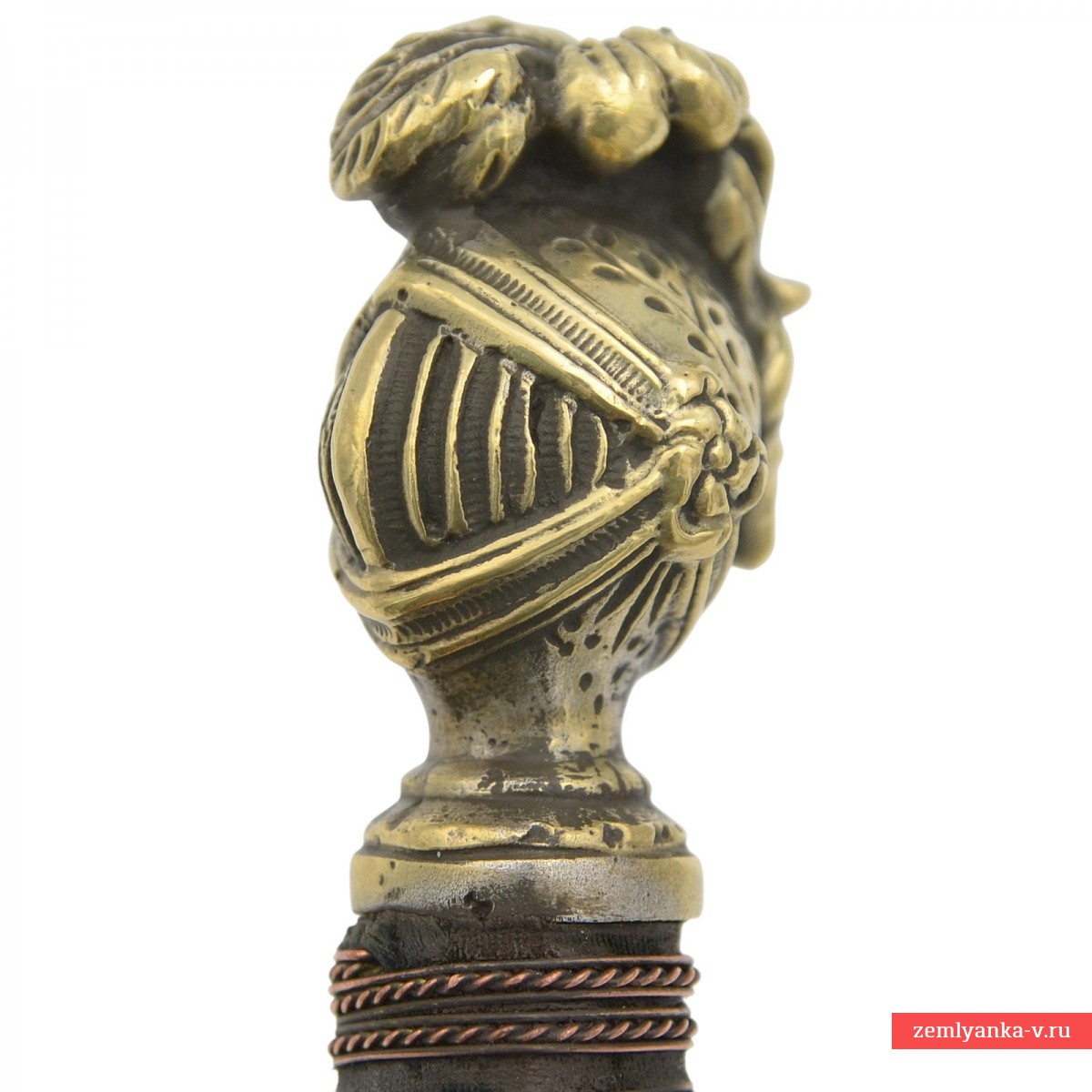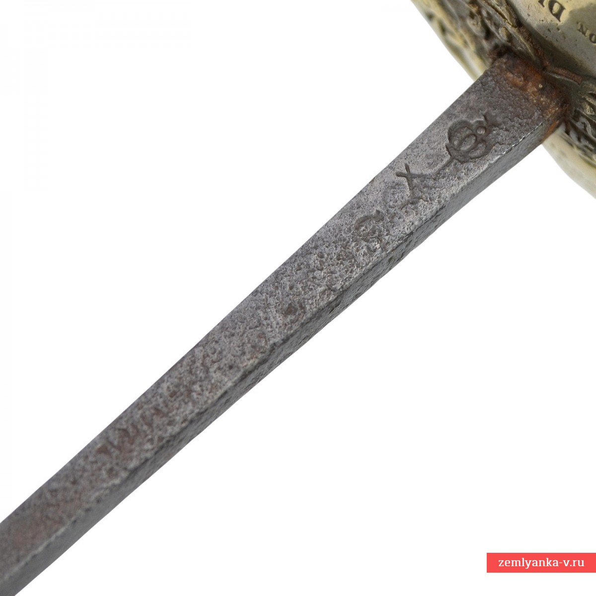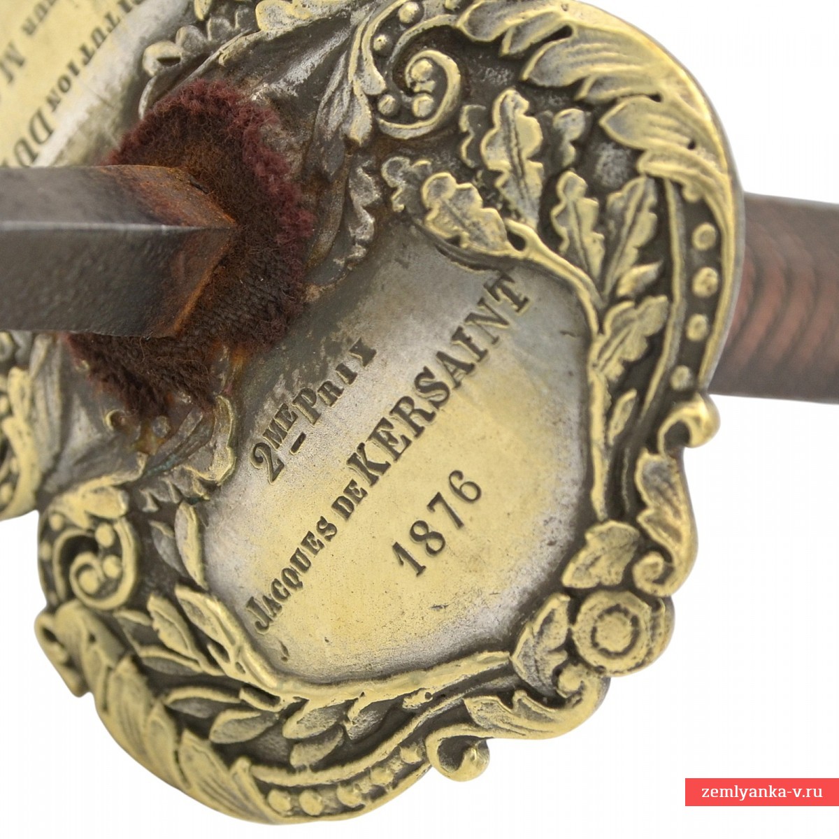Очень редкие и интересные рапиры в хорошем коллекционном состоянии. Сталь, дерево, бронза, серебрение. Каждая рапира состоит из клинка и эфеса. Клинки стальные, в сечении 4-гранные, без долов. Клинки изготовлены знаменитой мануфактурой братьев «Куло» в Клингентале, о чем говорят множественные клейма у основания. Эфесы состоят из рукоятей, наверший и чашек. На чашках рапир помещены наградные надписи: «2me Prix Jacques de Kersaint 1876 Institution Duplay Professeur Manniez» ( «2-ой приз Жаку-де Керсену, 1876 год, институт Дюпле, профессор Манние», франц.). Данная надпись говорит о том, что рапиры были вручены в качестве 2-го приза, вероятно, студенту института Дюплей Жаку-де Керсену, преподавателем (фехтования?) профессором Манние. Институт Дюплей был одной из престижных частных школ-интернатов, часто расположенных в Париже (особенно в центральных районах или на Левом берегу), которые готовили сыновей буржуазии и аристократии к основным национальным конкурсным экзаменам или экзаменам на получение аттестата о среднем образовании. В то время эти учреждения дополняли или служили альтернативой престижным государственным лицеям, таким как лицеи Луи-ле-Грана или Генриха IV. Они славились своей строгой дисциплиной, индивидуальным подходом к обучению и качеством преподавательского состава, часто состоявшего из профессоров с учеными степенями или известных наставников. Название «Дюплей» имеет историческое значение, поскольку семья Дюплей была известна тем, что укрывала Робеспьера во время революции, хотя в XIX веке учреждение больше ориентировалось на академическое превосходство, чем на политическую активность. Чашки рапир изготовлены из бронзы и почти полностью сохранили оригинальное серебрение. Рукояти деревянные, по всему периметру обмотаны проволокой. Ножны не предполагались. Великолепный подарок любому любителю фехтования, гарантия подлинности!