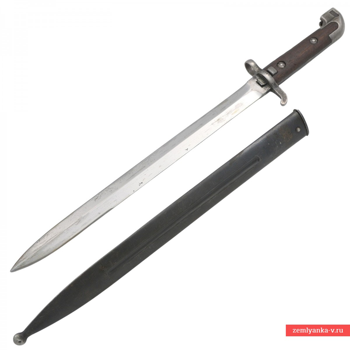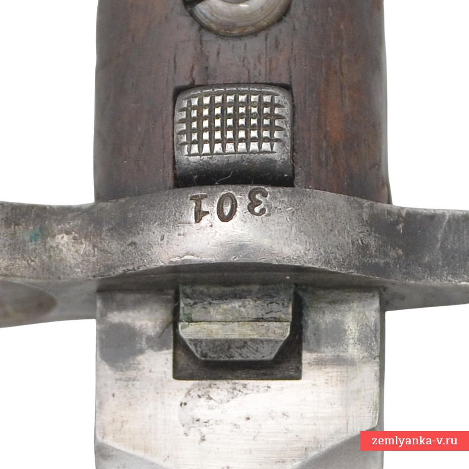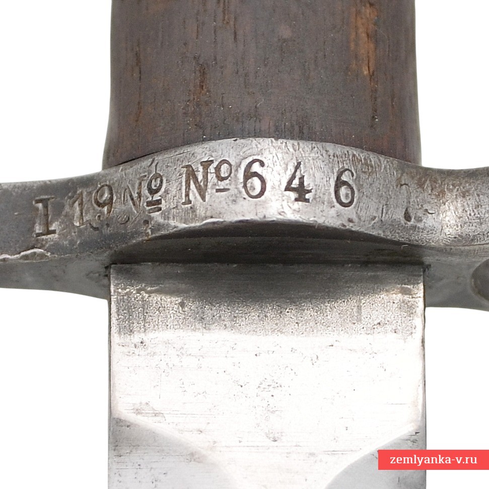 Клинок стальной, прямой, двулезвийный, без долов. Рукоять образована двумя деревянными щечками, скрепленными с хвостовиком двумя винтами. В головке рукояти расположен Т-образный паз и пружинная защелка с внутренним расположением спиральной пружины. Крестовина c кольцом для ствола со стороны лезвия клинка. Штык крепится в ножнах с помощью специальной защелки, расположенной у крестовины. Ножны стальные, с круглым шпеньком и шариком на конце.