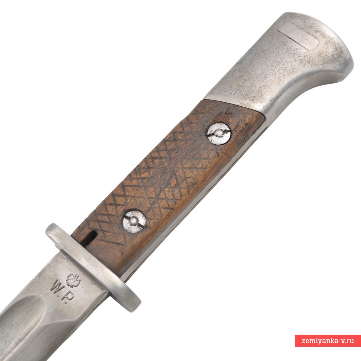 Клинок стальной, прямой, однолезвийный, с одним долом с обеих сторон. Рукоять образована двумя деревянными щечками с перекрёстными насечками, скрепленными с хвостовиком двумя винтами. В головке рукояти Т-образный паз с цилиндрическим расширением и пружинная защелка с внутренним расположением спиральной пружины. Отверстие для чистки паза в рукояти прямоугольное, расположено в щечках рукояти, рядом с крестовиной. Короткая стальная крестовина. Ножны стальные со вставным устьем, шпеньком и шариком на конце. Штык комплектуется кожным подвесом.