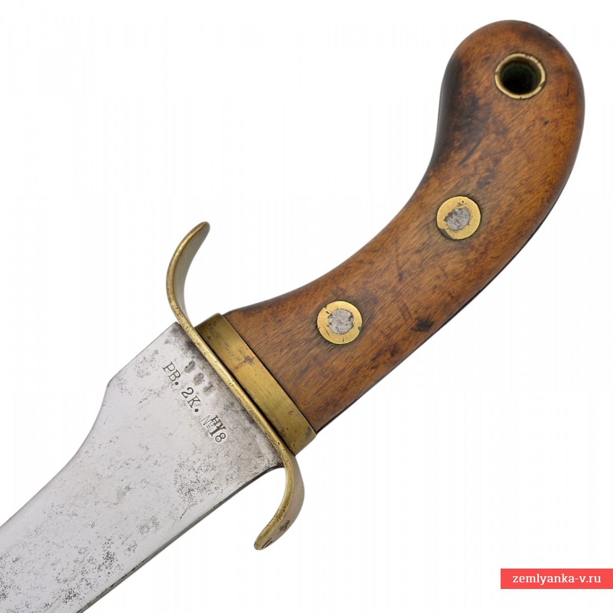 Предмет находится в хорошем коллекционном состоянии. Незначительные поверхностные следы коррозии на клинке. Заплатка на коже ножен. Потёртости и следы бытования на ножнах и эфесе.