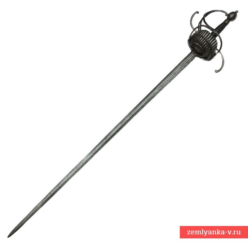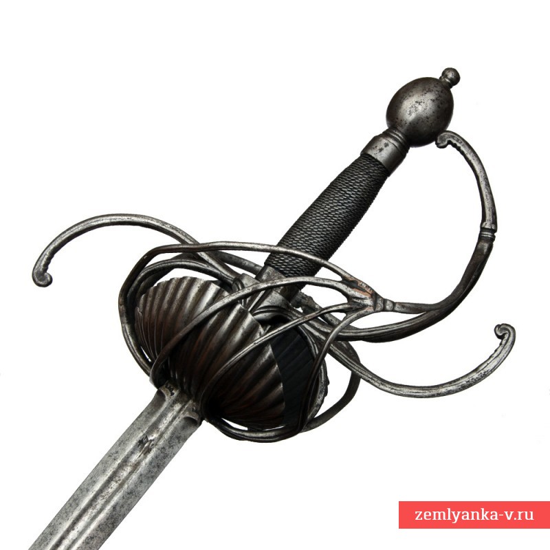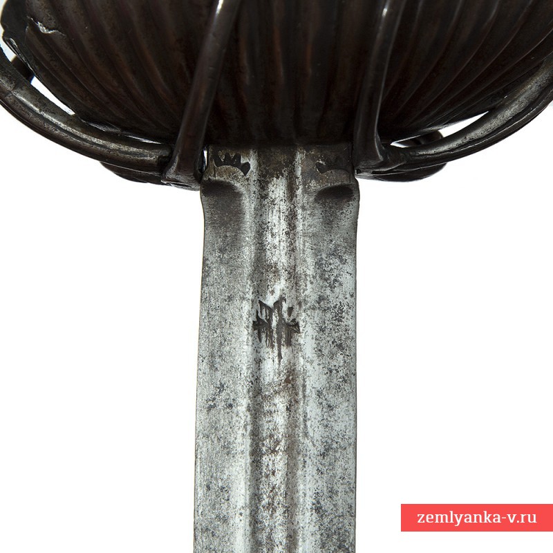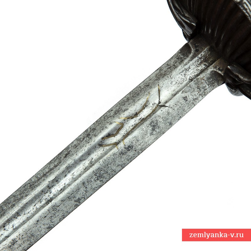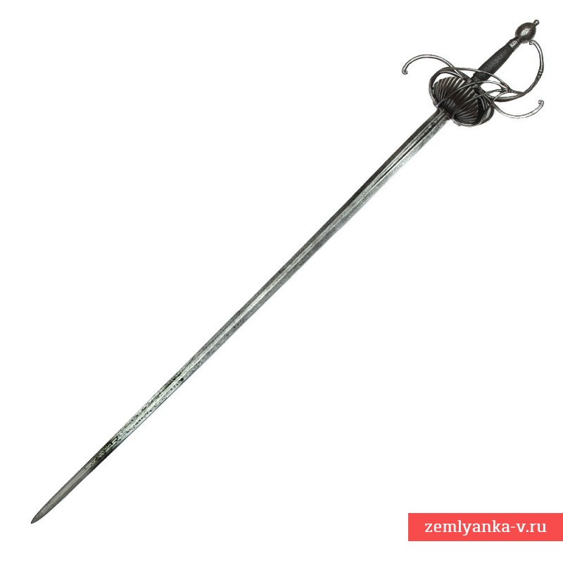 Оригинальная шпага в неплохом коллекционном состоянии. В доле клинка имеется стилизованное изображение «волчка» — клеймо г. Пассау в Германии. Эфес классический, с дужками и чашкой, выполненной в виде морской раковины. Ножны отсутствуют. Оружие такого типа было широко распространено в Испании, Португалии и Германии. Тип гарды «папенхеймер» (или «папенхайм»), известный еще с XVI века, был позже назван по имени известного военачальника времен Тридцатилетней войны (1618—1648 гг) маршала Готфрида Генриха фон Паппенхайма. В 1623 г. под начало графа Паппенхайма был передан полк кирасир, которые впоследствии стали известны как знаменитые «паппенхаймеры». Именно этот отряд получил на вооружение шпаги такого типа. Таким образом, оружие получило свое название не по имени мастера, который его изобрел или изготовил, а по имени того, кто воевал с этим оружием в руках. Гарантия подлинности.