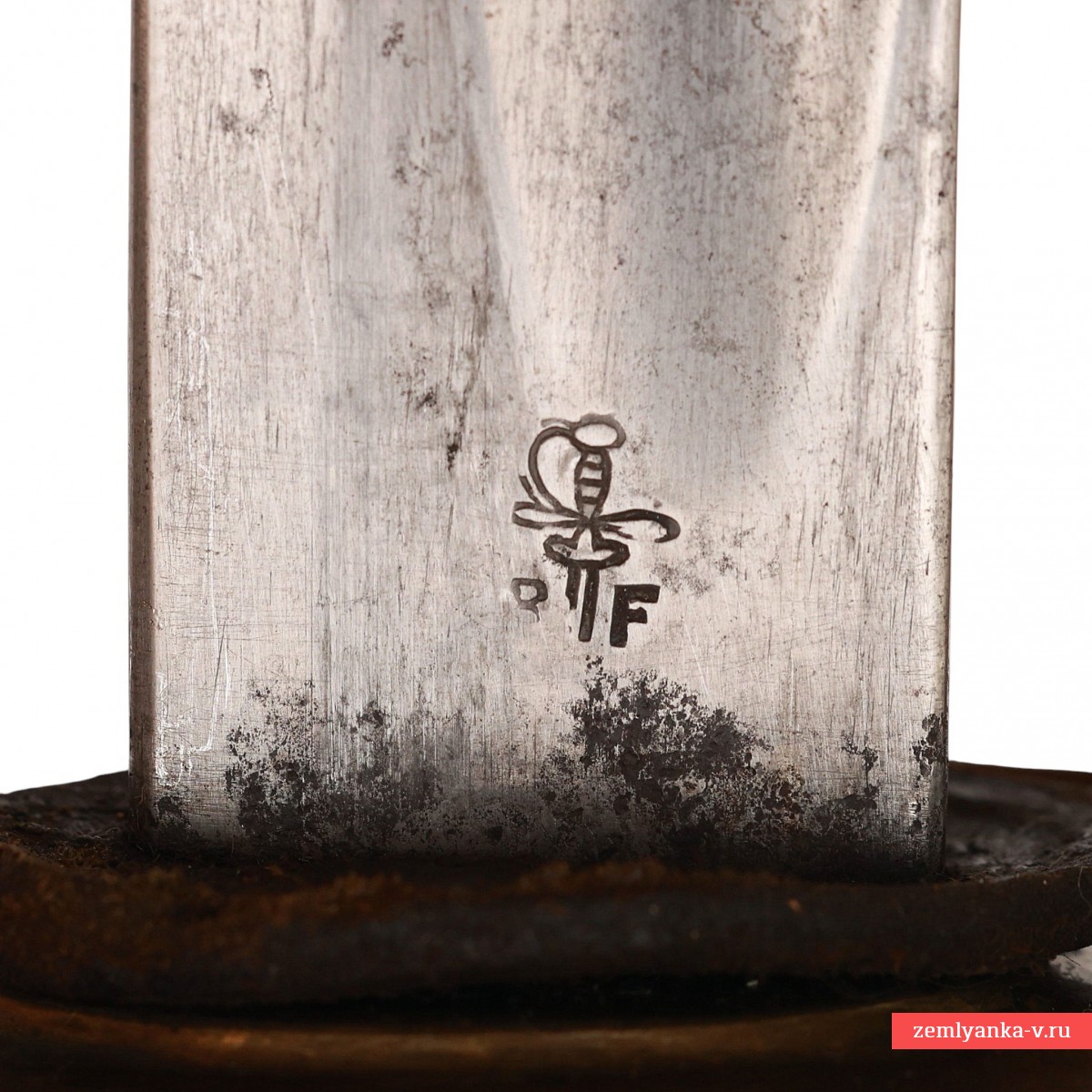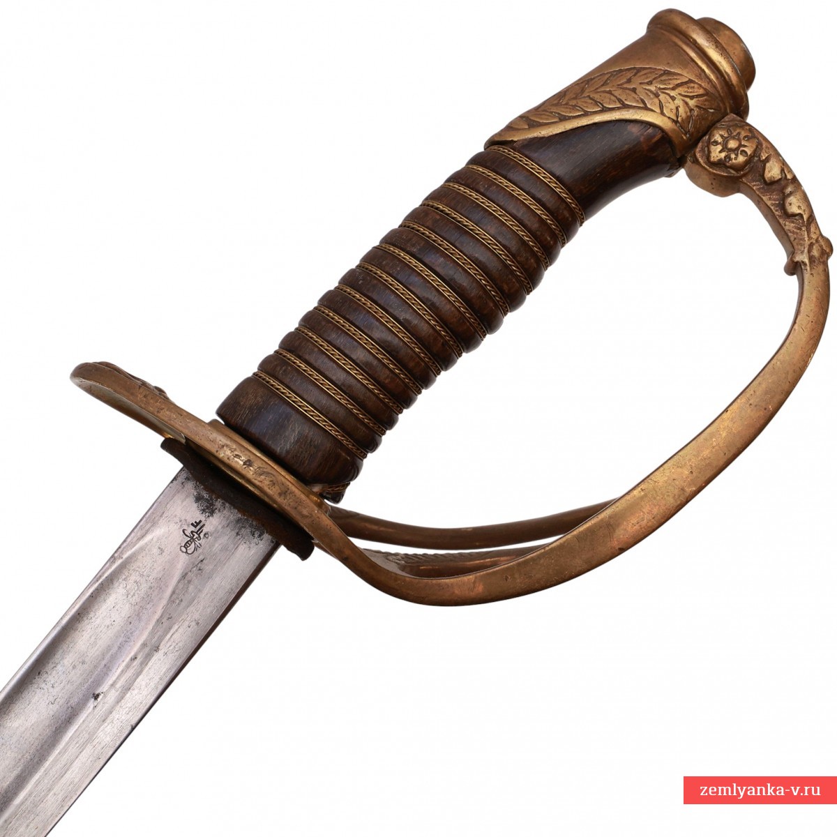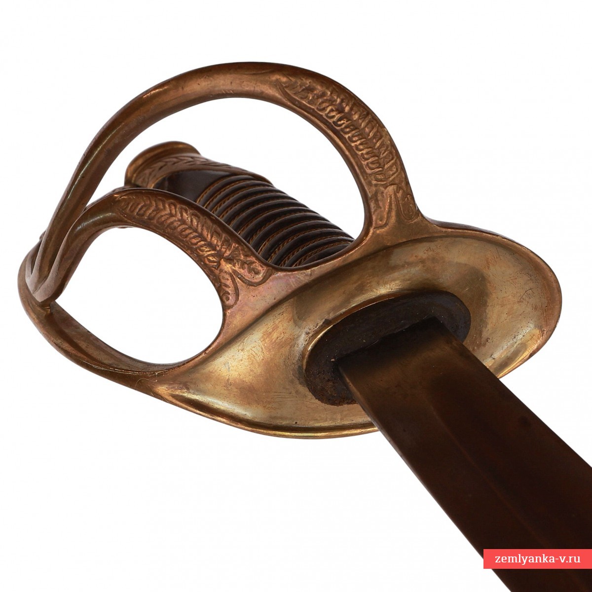 Клинок стальной, слегка изогнутый, однолезвийный, с одним широким долом и одним узким у обуха с обеих сторон, боевой конец двулезвийный. На пяте клинка нанесено стилизованное изображение эфеса шпаги и аббревиатуры «B.F.» – клеймо военного арсенала «BALP St. ETIENNE». Эфес состоит из рукояти и гарды. Рукоять роговая, с поперечными желобками, перевитыми кручёной латунной проволокой. Головка рукояти латунная, овальной формы, с короткой спинкой. Сверху головки расклёпан хвостовик клинка. Навершие украшено рельефными растительными орнаментами. Гарда латунная, состоит из одной основной защитной дужки и двух дополнительных, которые плавно переходят в чашку. Дальний конец чашки слегка загнут по направлению к обуху клинка и украшен рельефным растительным орнаментом. Ножны стальные, со вставным устьем, одной обоймицей с подвижным кольцом для портупеи и асимметричным башмаком.