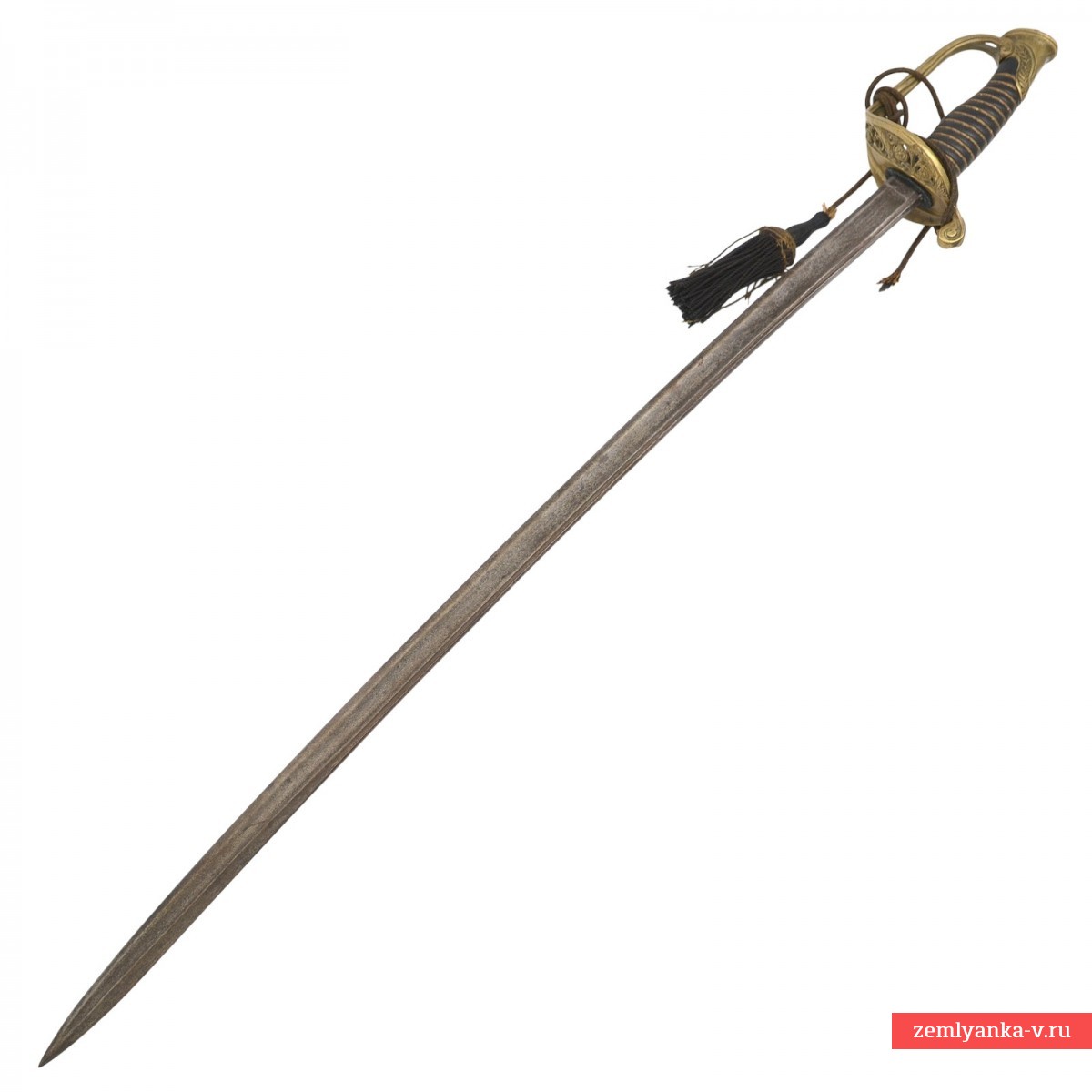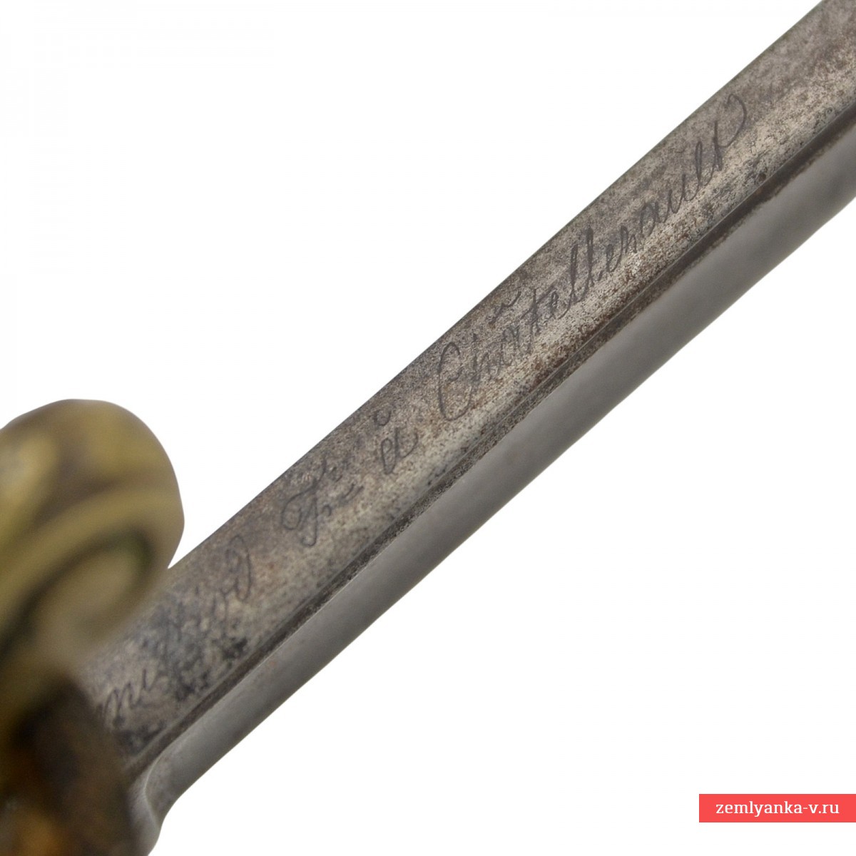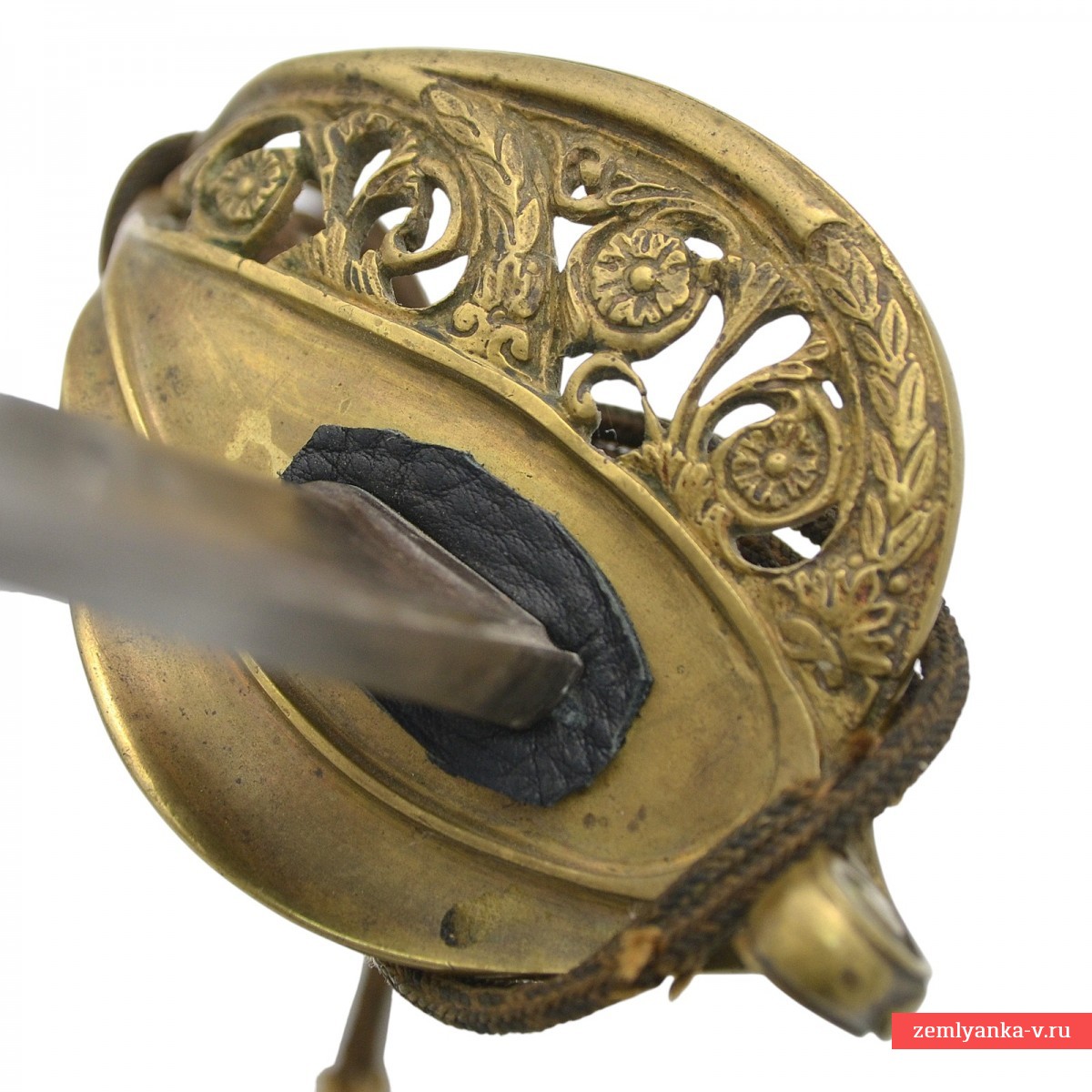 Клинок стальной, незначительно изогнутый, однолезвийный, с двумя долами (один узкий у обуха, другой широкий), боевой конец двулезвийный. На обух клинка травлением нанесена надпись «Manuf're … de Chattelerault» — клеймо производителя — мануфактуры в Шательро. Эфес состоит из рукояти и гарды. Рукоять деревянная, цилиндрической формы с утолщением в средней части, с поперечными желобками, обтянутая кожей. Навершие рукояти латунное, украшенное орнаментами на растительную тематику (лепестки лавра), имеет продолжение в виде короткой спинки. Сверху навершия расклёпан хвостовик клинка. Изогнутая дужка гарды сформирована тремя дужками, скреплёнными между собой. Две боковые дужки книзу расширяются, образуя чашку гарды, затем снова соединяются и переходят в спиралевидный конец крестовины. Конец крестовины загнут в сторону обуха клинка. С обеих сторон чашка гарды украшена резными ажурными растительными орнаментами. Ножны отсутствуют. Сабля комплектуется темляком.