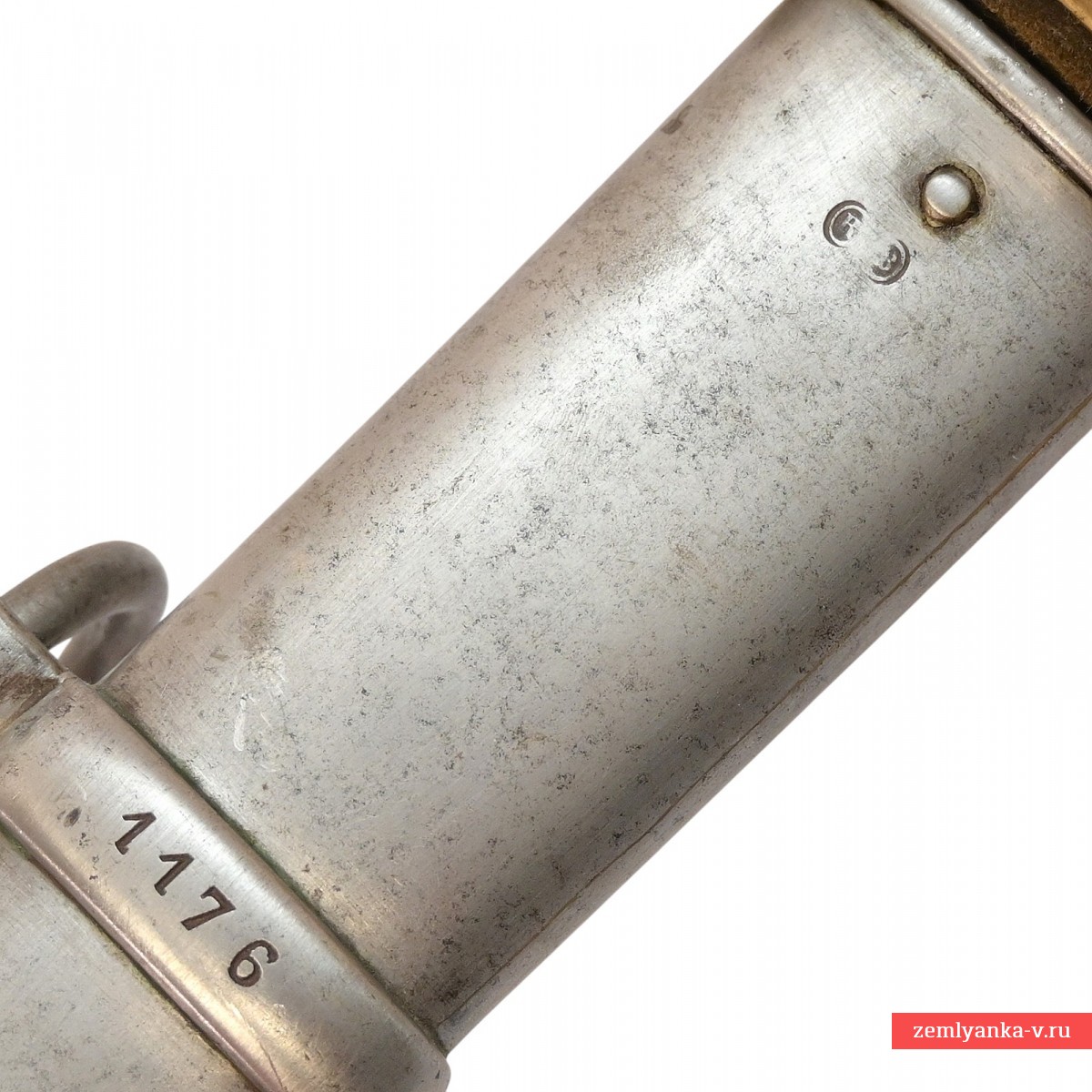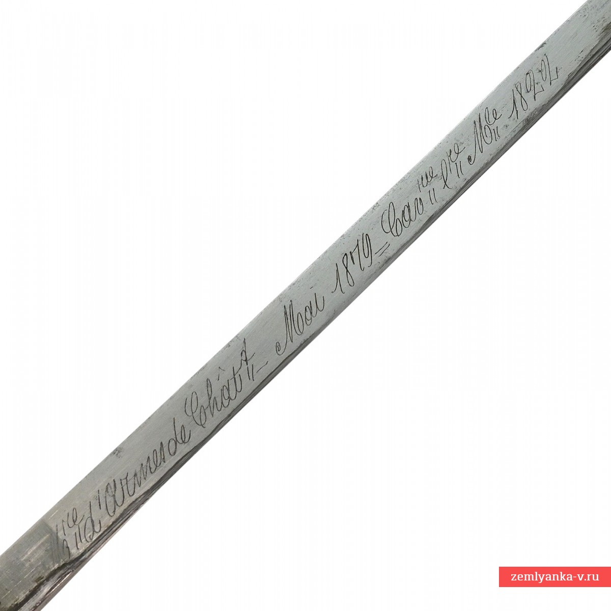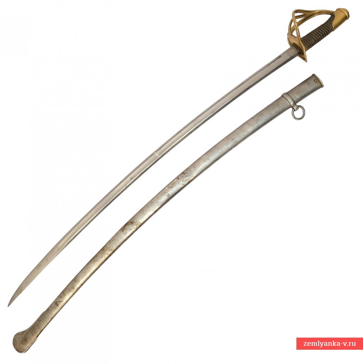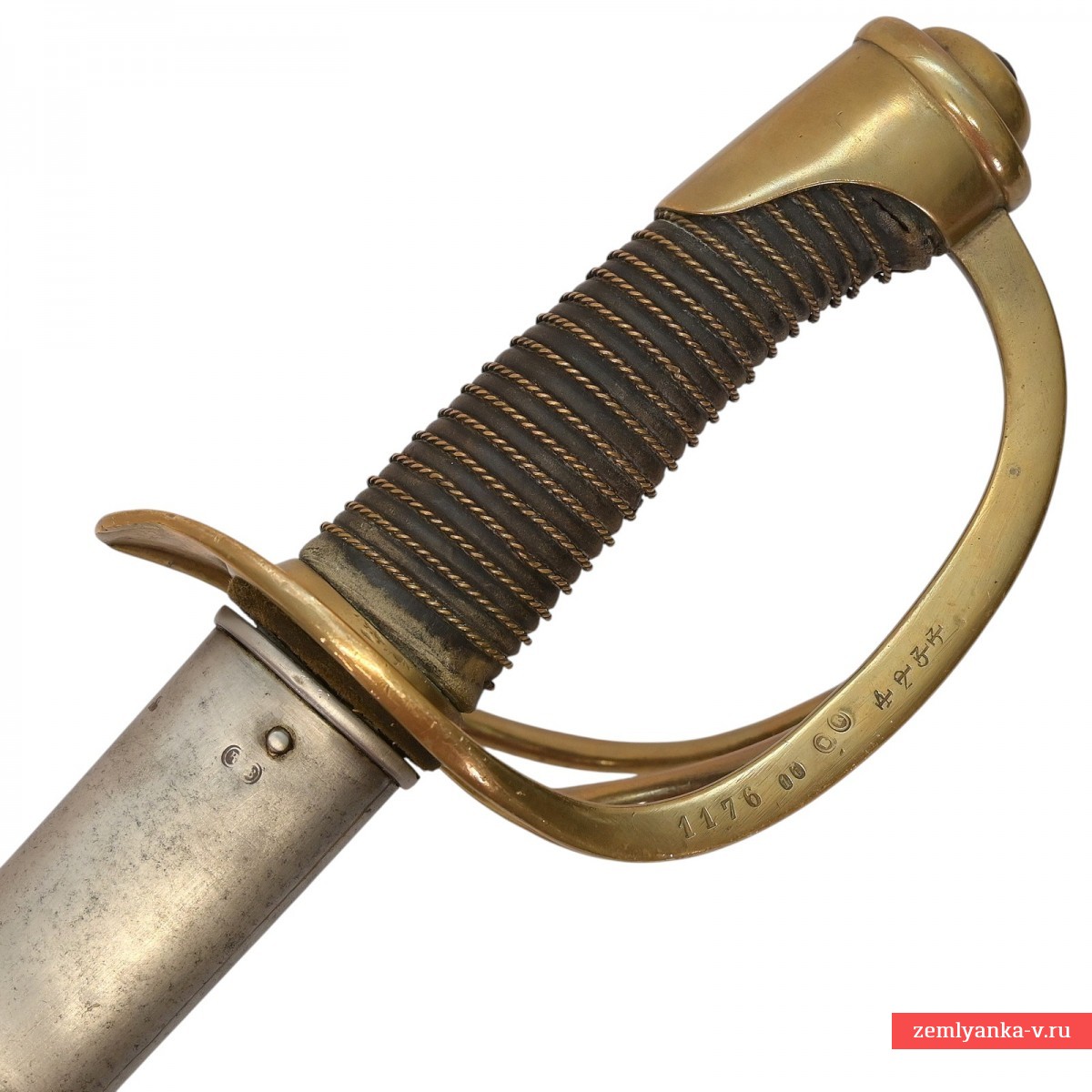 Клинок стальной, слегка изогнутый, однолезвийный, с одним широким и одним узким у обуха долами с обеих сторон, боевой конец двулезвийный. Эфес состоит из рукояти и гарды. Рукоять деревянная, обтянутая кожей, с поперечными желобками, перевитыми кручёной латунной проволокой. Головка рукояти латунная, овальной формы, с короткой спинкой. Сверху головки расклёпан хвостовик клинка. Гарда латунная, состоит из одной основной защитной дужки и двух дополнительных, которые плавно переходят в чашку. Дальний конец чашки слегка загнут по направлению к обуху клинка. Ножны стальные со вставным устьем, одной обоймицей с подвижным кольцом для портупеи и асимметричным башмаком.