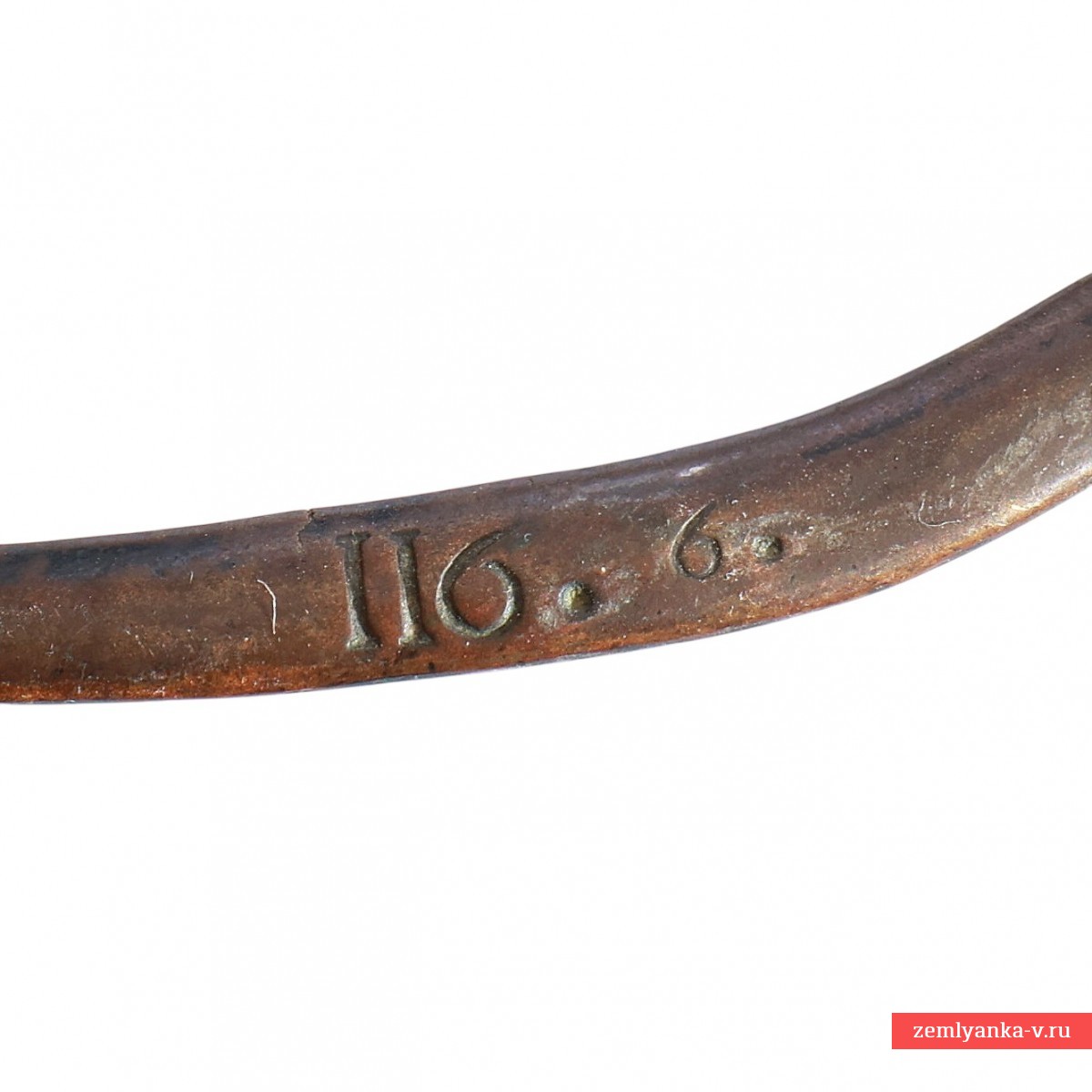 Предмет находится в неплохом коллекционном состоянии. Следы коррозии на клинке. Вмятины и загрязнения на эфесе.