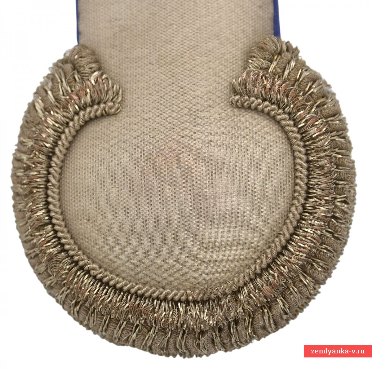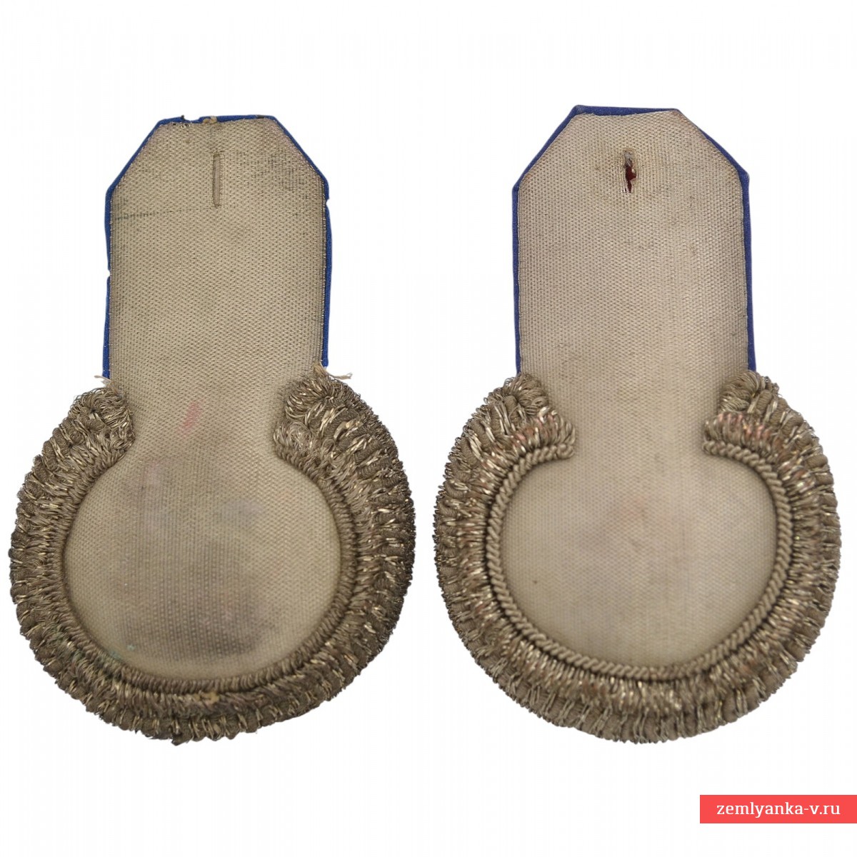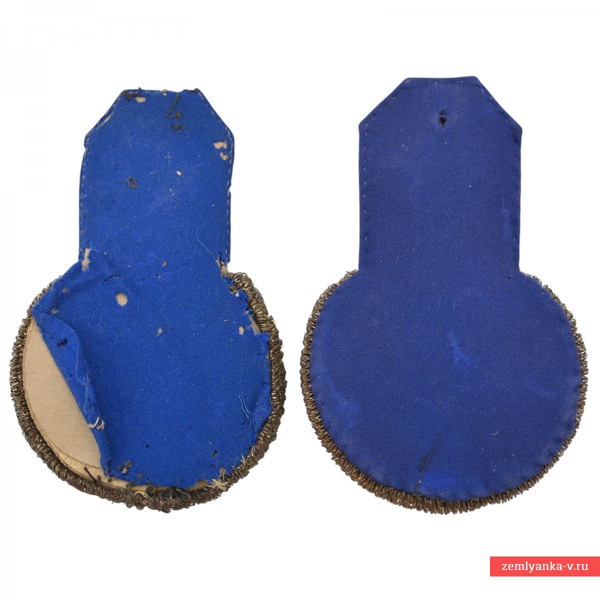 В 1826 г. в Гельсингфорсе (ныне Хельсинки) был сформирован Финский учебный стрелковый батальон – одна из первых частей русской армии, целиком вооруженная нарезным огнестрельным оружием. Спустя всего три года, в 1829 г. батальону были пожалованы права Молодой гвардии и наименование Лейб-гвардии Финского стрелкового батальона. В 1871 г., когда гвардейские стрелковые батальоны были сведены в бригаду, Финский батальон получил номер 3. Это была единственная гвардейская часть, укомплектованная исключительно уроженцами Великого княжества Финляндского и содержавшаяся на средства, ассигнованные финским сенатом. Батальону было присвоено общее для гвардейских стрелков обмундирование, но с отделкой финских национальных цветов – светло-синее прикладное сукно при серебряном металлическом приборе. Граф А. А. Игнатьев вспоминал, «с какой гордостью носили эти замечательные стрелки свои национальные синие канты вместо русских малиновых, а за бортами мундиров — целую цепочку отличий за отменную стрельбу». На фоне нарастания в Финляндии революционных и сепаратистских настроений все финские войска в 1903 – 1905 гг. были расформированы, поэтому относящиеся к ним артефакты сегодня встречаются крайне редко. Эполеты изготовлены в достаточно дорогом исполнении – из высокопробной канители, с тканой петлей вместо отверстия под эполетную пуговицу. Сохранилась также оригинальная коробка.