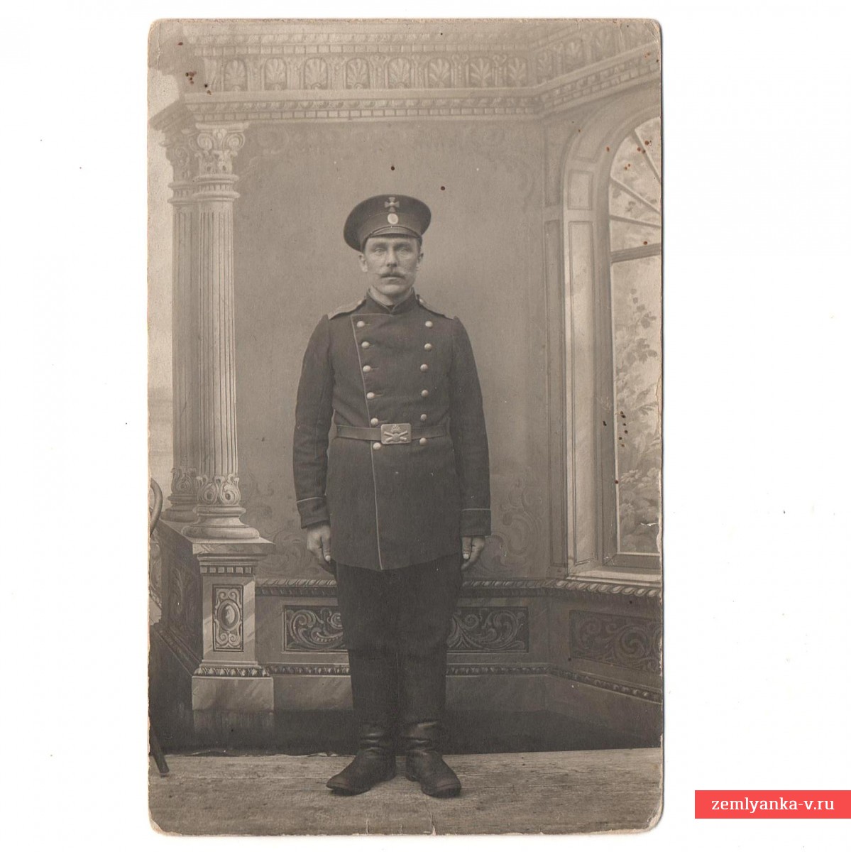 Оригинальный, качественный и достаточно редкий снимок в хорошем коллекционном состоянии. Открыточный формат. Шифровки не погонах видны не четко, вероятно, там нанесена литера «Ф», что означает принадлежность изображенного к Финляндской артиллерийской бригаде. Имя ополченца: Juhannes Mütjan. Косвенно это подтверждает и подпись на финском языке на тыльной стороне фото: Призван в 1914 году. Гарантия подлинности. Редкость.