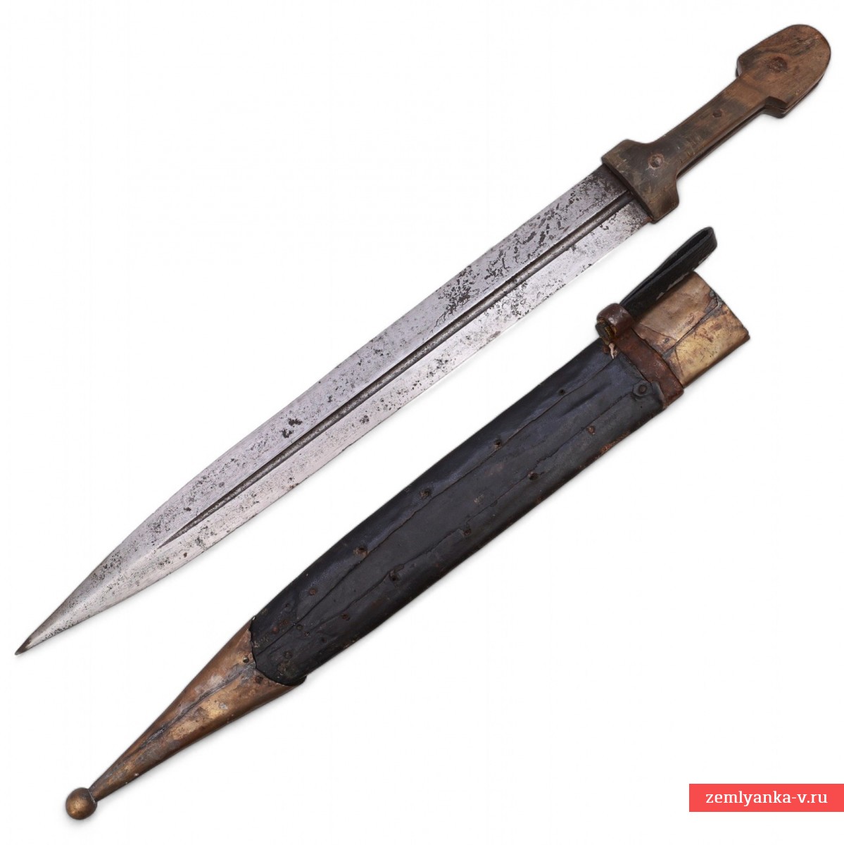 Кинжал стальной, прямой, двулезвийный с одним узким долом с обеих сторон, смещённым от центра. На правой голомени на арабском языке нанесена надпись «Работа Махмуда» и дата изготовления изделия» ١٢٦٨» — 1268 год по Хиджре или 1852 год по грегорианскому календарю. Рукоять классическая, кавказского типа, роговая. Рукоять укреплена на хвостовике клинка при помощи трех металлических заклепок, укрытых с наружной части фигурными накладками. Ножны деревянные, обтянутые кожей, с металлическим прибором, состоящим из устья со скобой с кольцом для петли подвеса и наконечника с шариком на конце. На ножнах закреплен кожаный ремешок. Устье ножен украшено с лицевой стороны гравированным орнаментом.