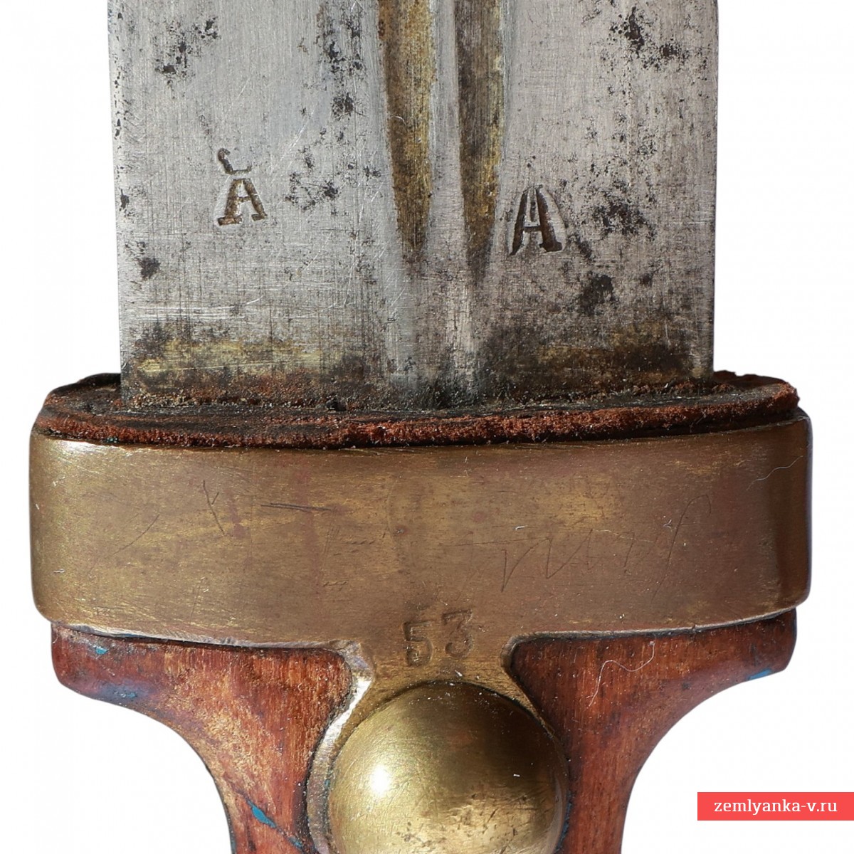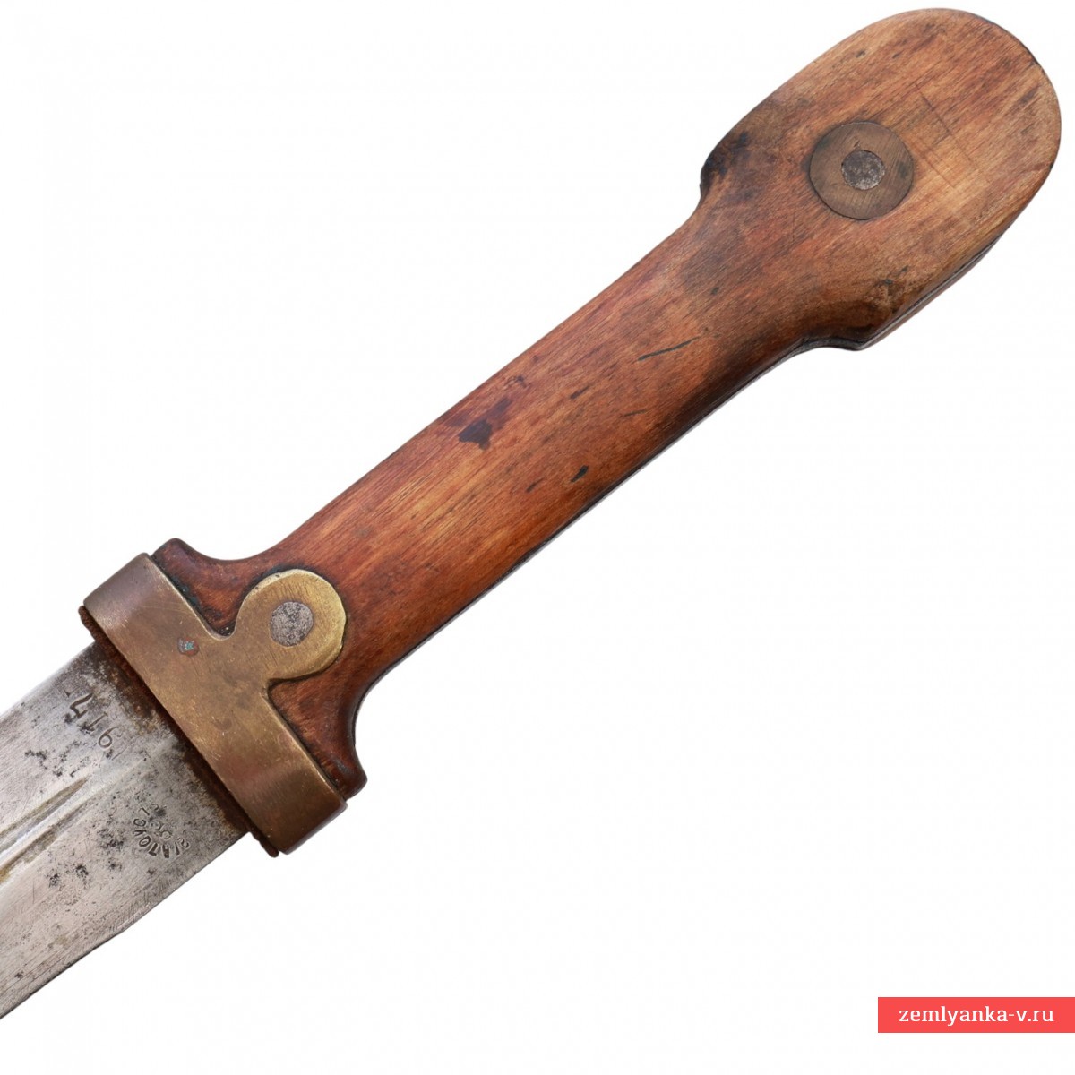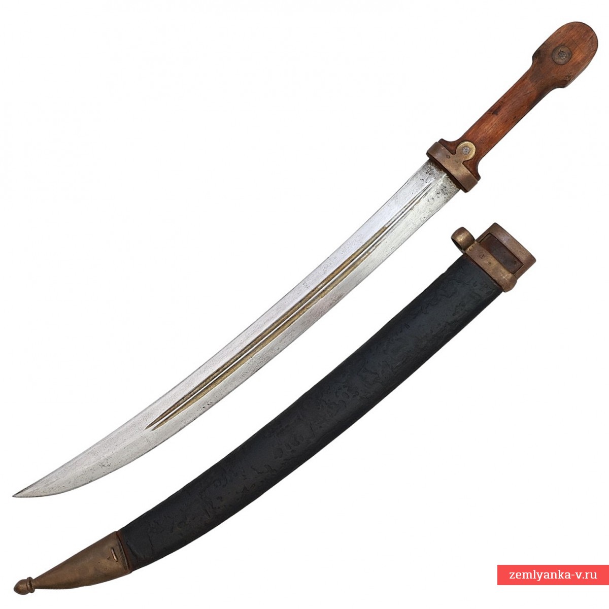 Предмет находится в хорошем коллекционном состоянии. Незначительные поверхностные следы коррозии на клинке. Временная патина на латунных деталях рукояти и приборе ножен. Следы бытования на рукояти и ножнах.
