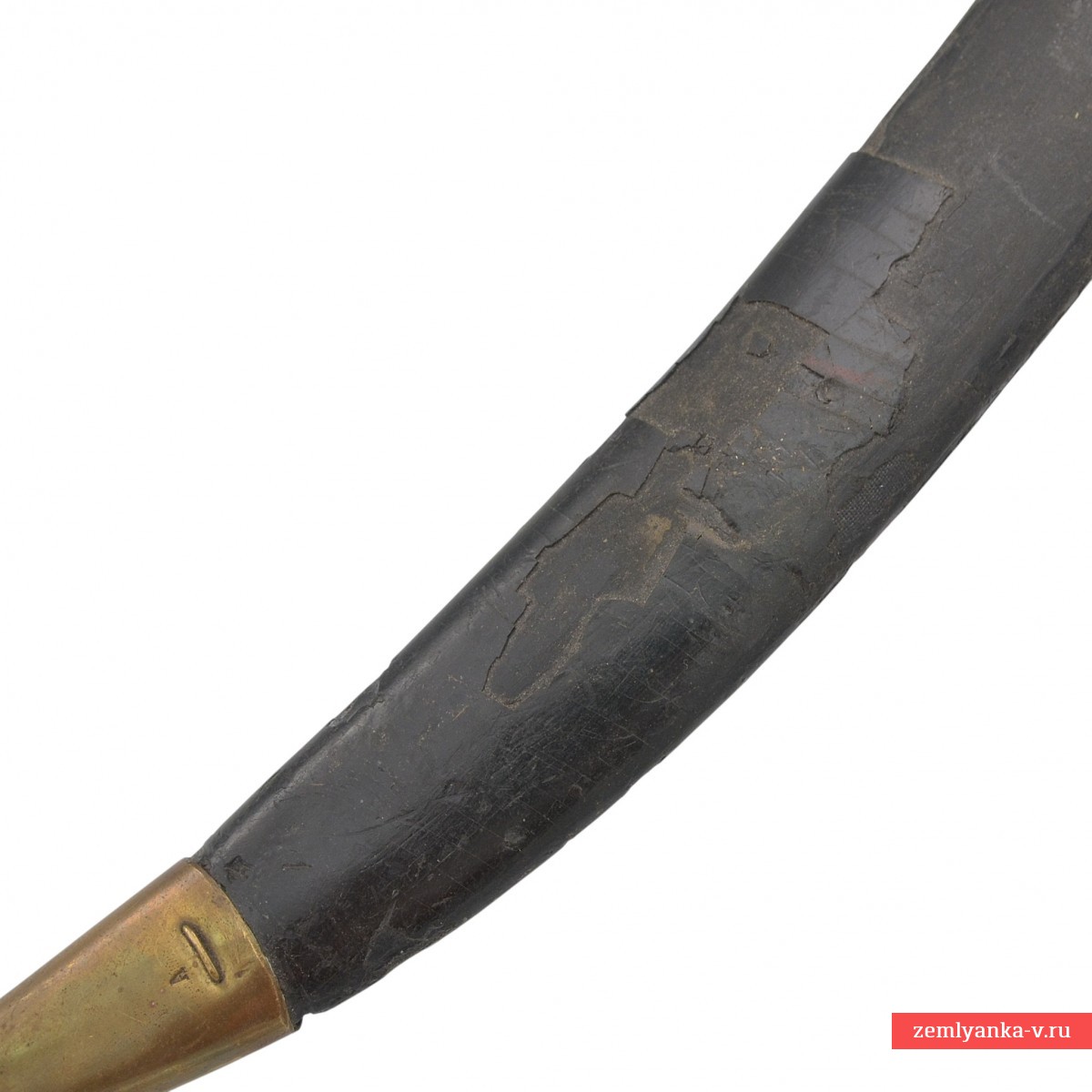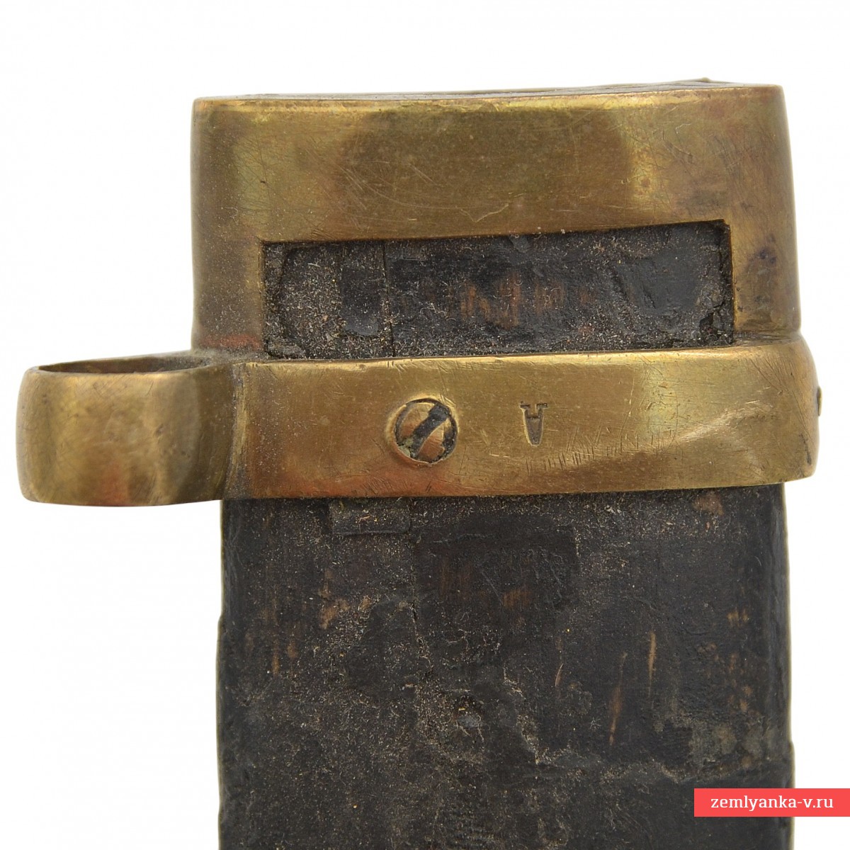 предмет находится в хорошем коллекционном состоянии. Следы поверхностной коррозии на клинке. Утраты кожи на ножнах.