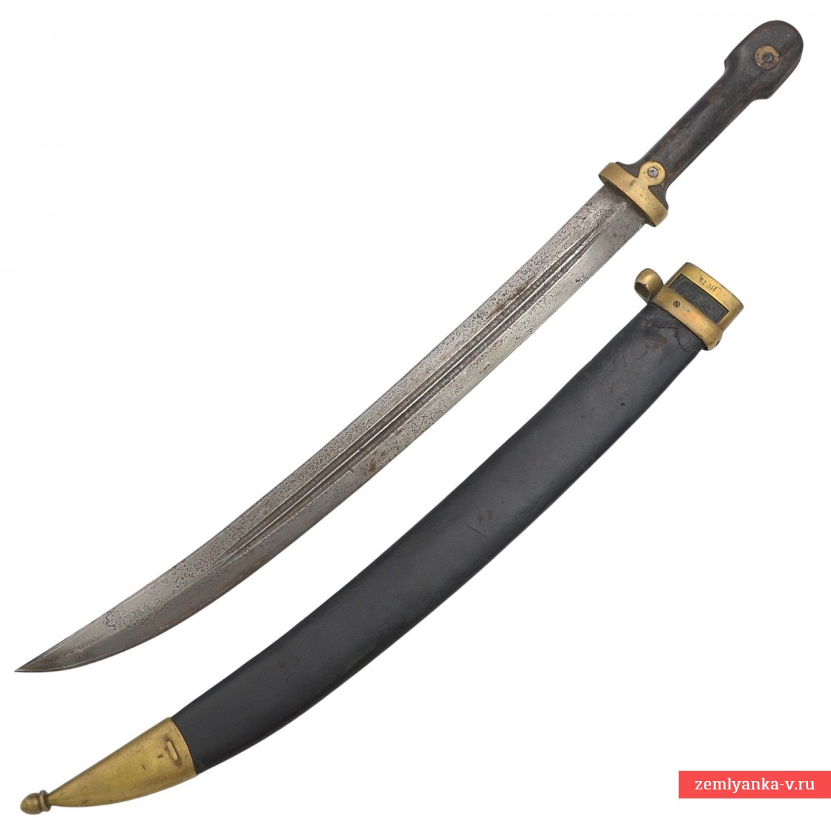 Клинок незначительно изогнутый, стальной, двулезвийный, с двумя узкими долами с обеих сторон. Эфес состоит из одной рукояти кавказской формы, с двумя деревянными щёчками, которые крепятся к черенку клинка при помощи двух заклёпок с полусферическими латунными накладками. У основания имеется латунная втулка. Ножны деревянные, обтянутые кожей, с латунным прибором, состоящим из фигурного устья с округлой неподвижной боковой скобой (проушиной) и наконечника с шариком. Устье крепится при помощи двух винтов; наконечник крепится при помощи одной скобы.