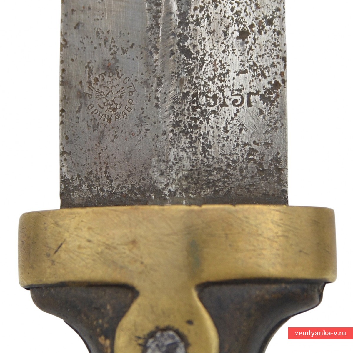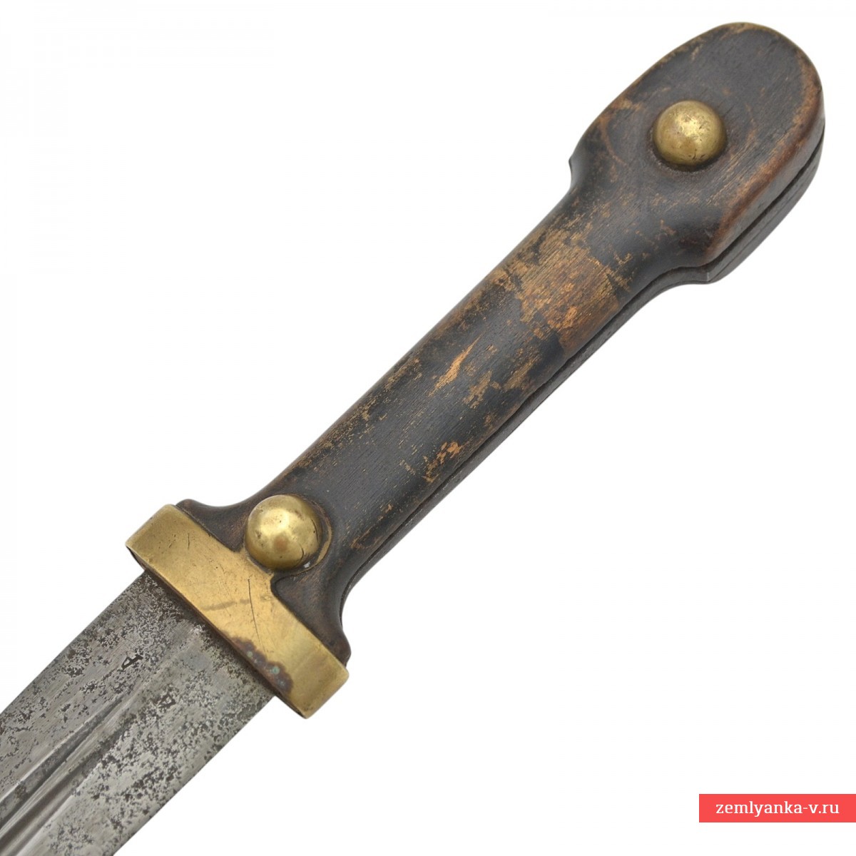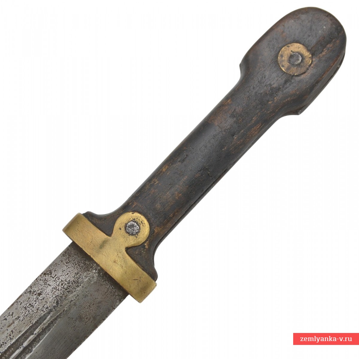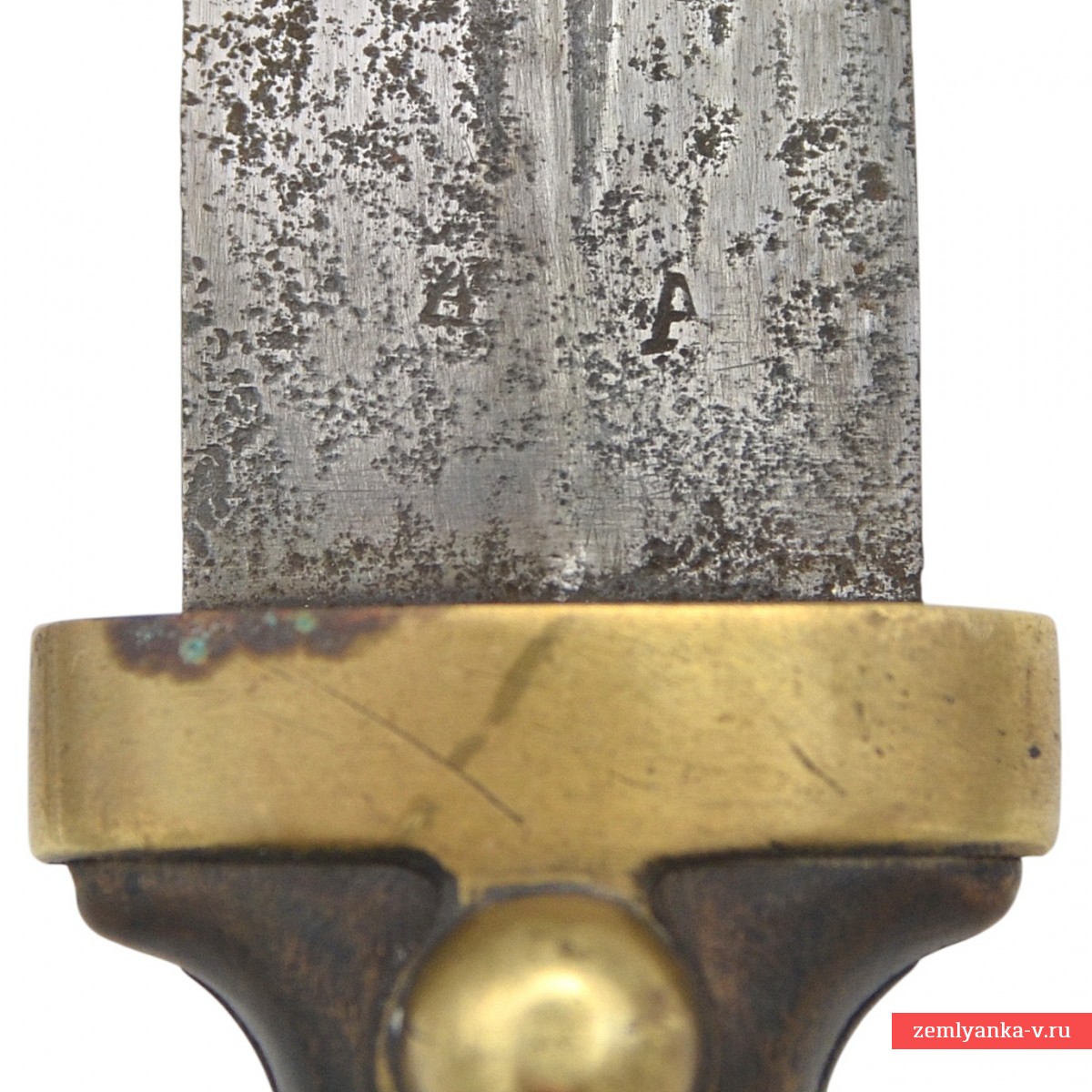 Предмет находится в неплохом коллекционном состоянии. Следы коррозии на клинке. Потёртости и царапины на рукояти. Потёртости и следы бытования на коже ножен, а также трещина в районе обоймицы.