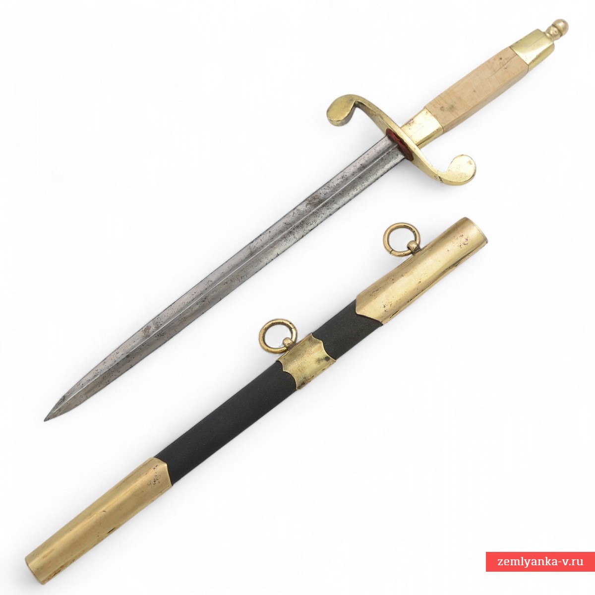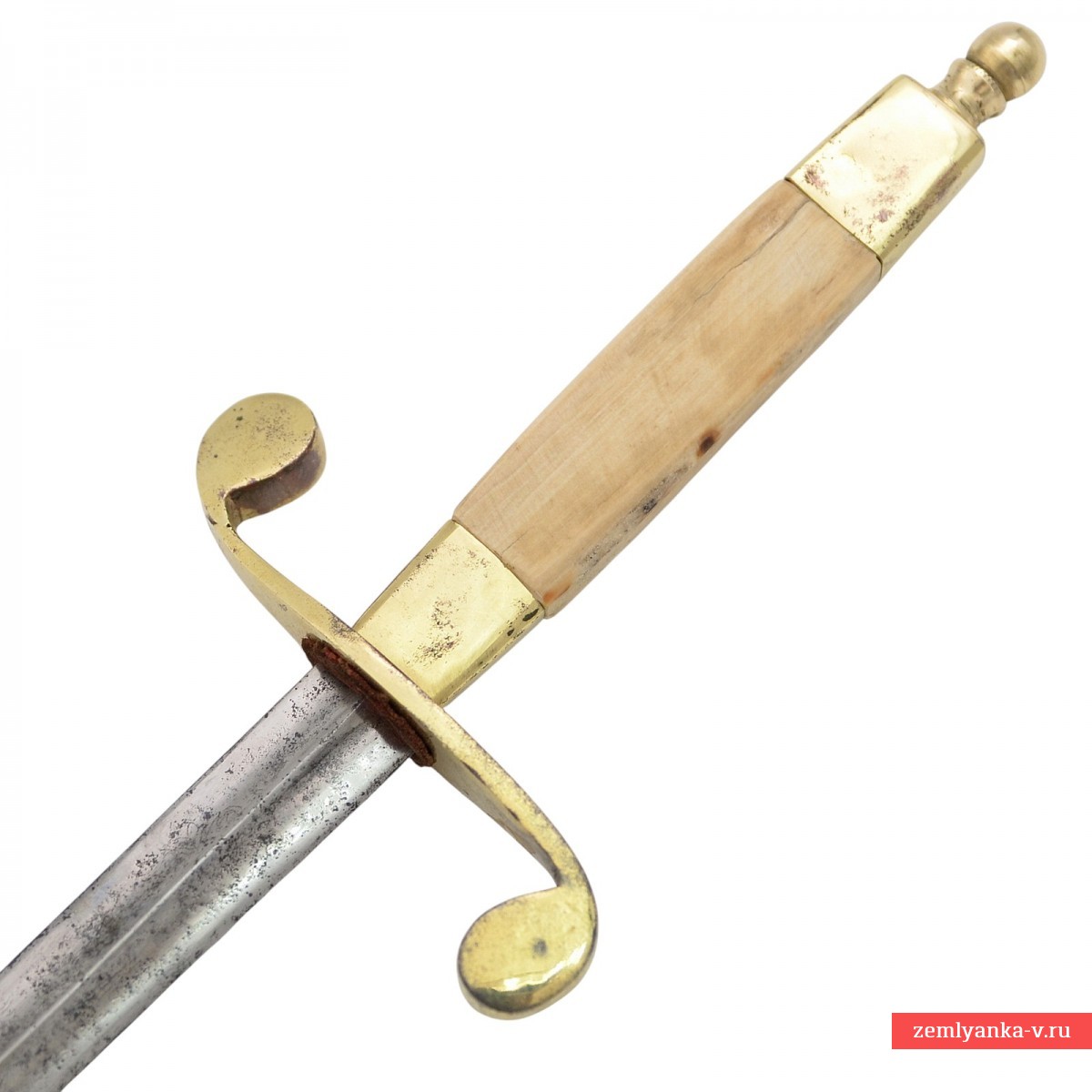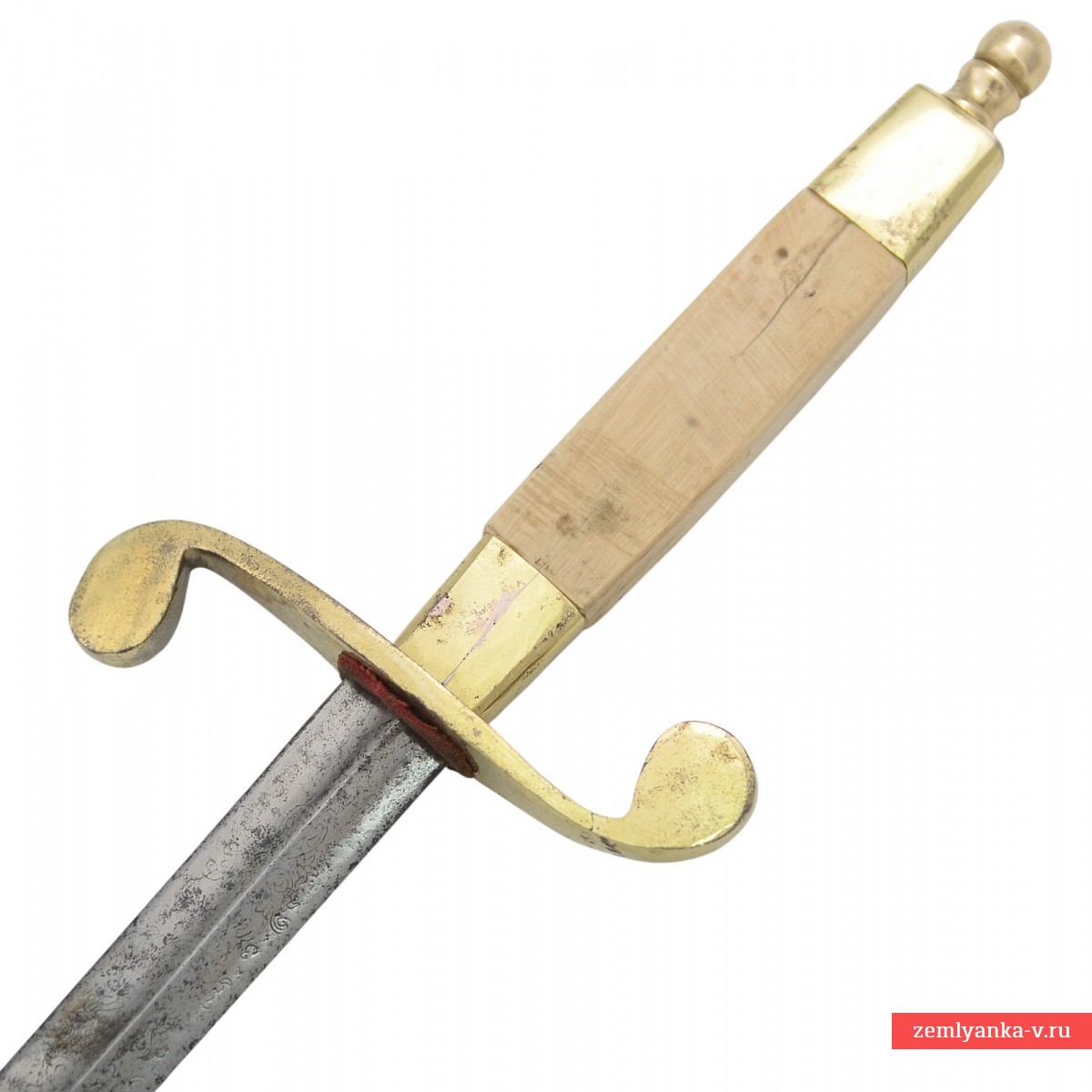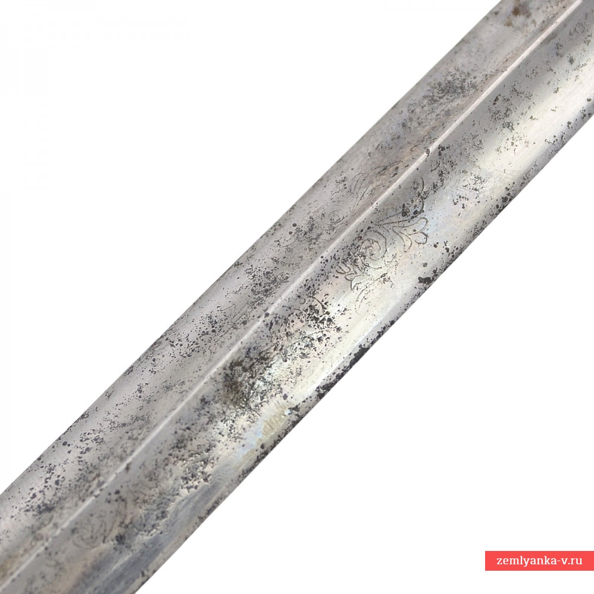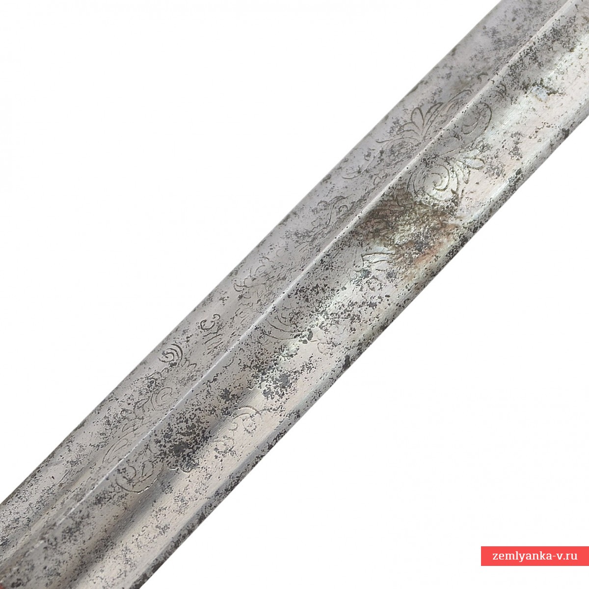 Клинок стальной, прямой, в сечении четырехгранный, с долами в каждой грани. На основании клинка сохранились следы нанесенных иглой орнаментов и надписи «Златоустъ». Эфес состоит из рукояти и крестовины. Крестовина латунная, с изогнутыми в разные стороны концами. Рукоять костяная, прямая, прямоугольная в сечении. Навершие рукояти латунное, штампованное, гладкое. Хвостовик клинка стянут на головке рукояти латунной закруткой. Ножны кожаные, с латунным прибором, состоящим из наконечника, гайки и устья с кольцами для портупеи. Прибор ножен с остатками позолоты.