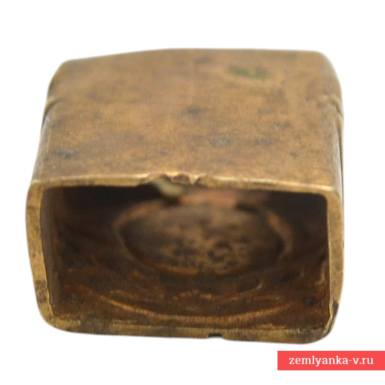 Латунь, штамповка, пайка, позолота. Оригинальное навершие в хорошем состоянии. Отштамповано изначально без императорского вензеля, вероятно, на фабрике «Слава». Гарантия подлинности.