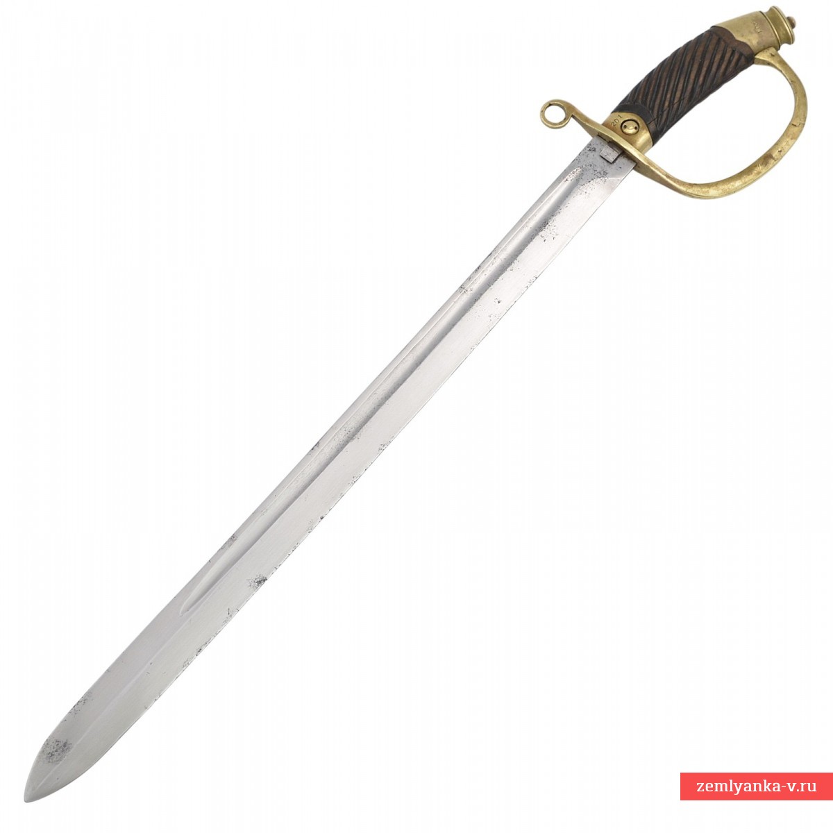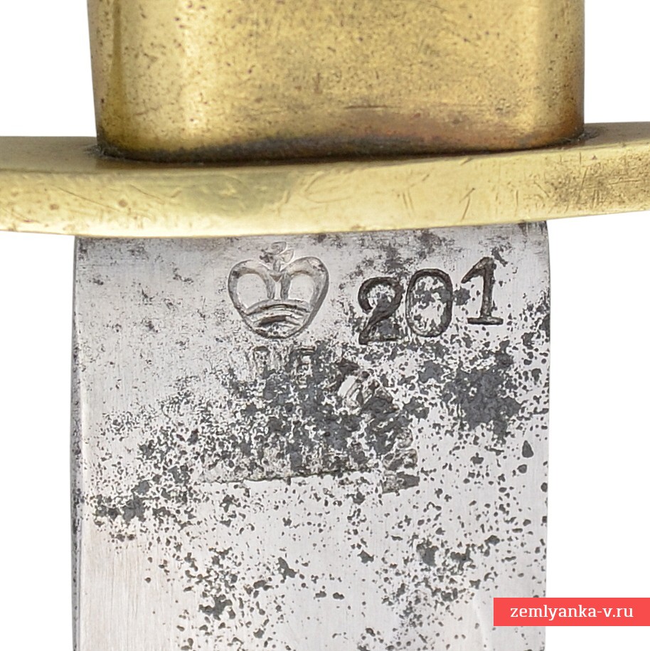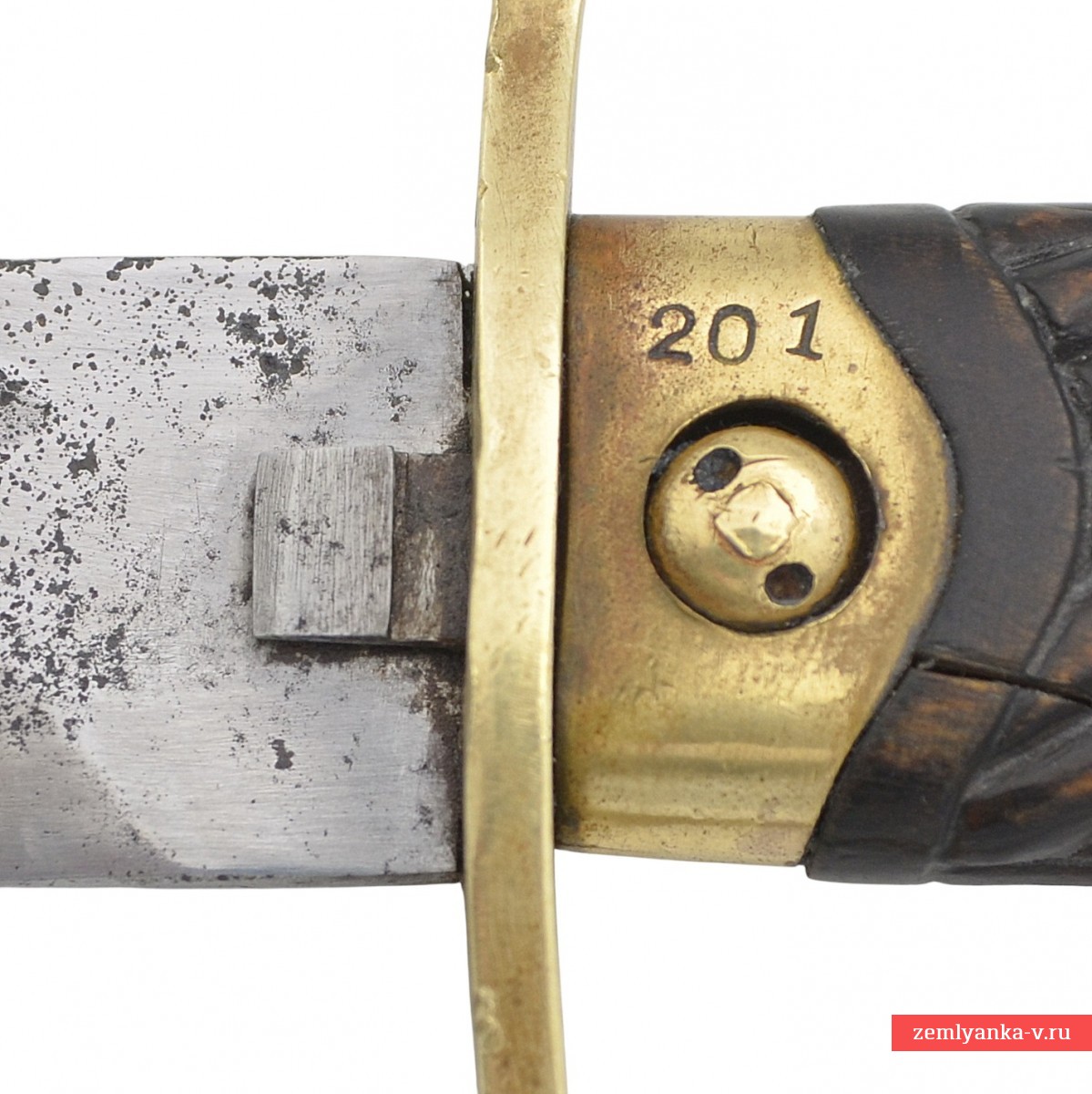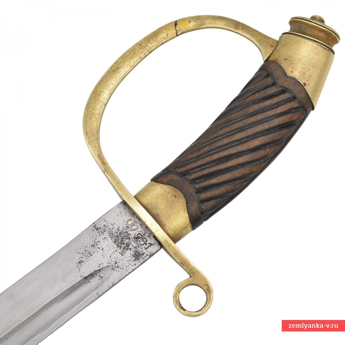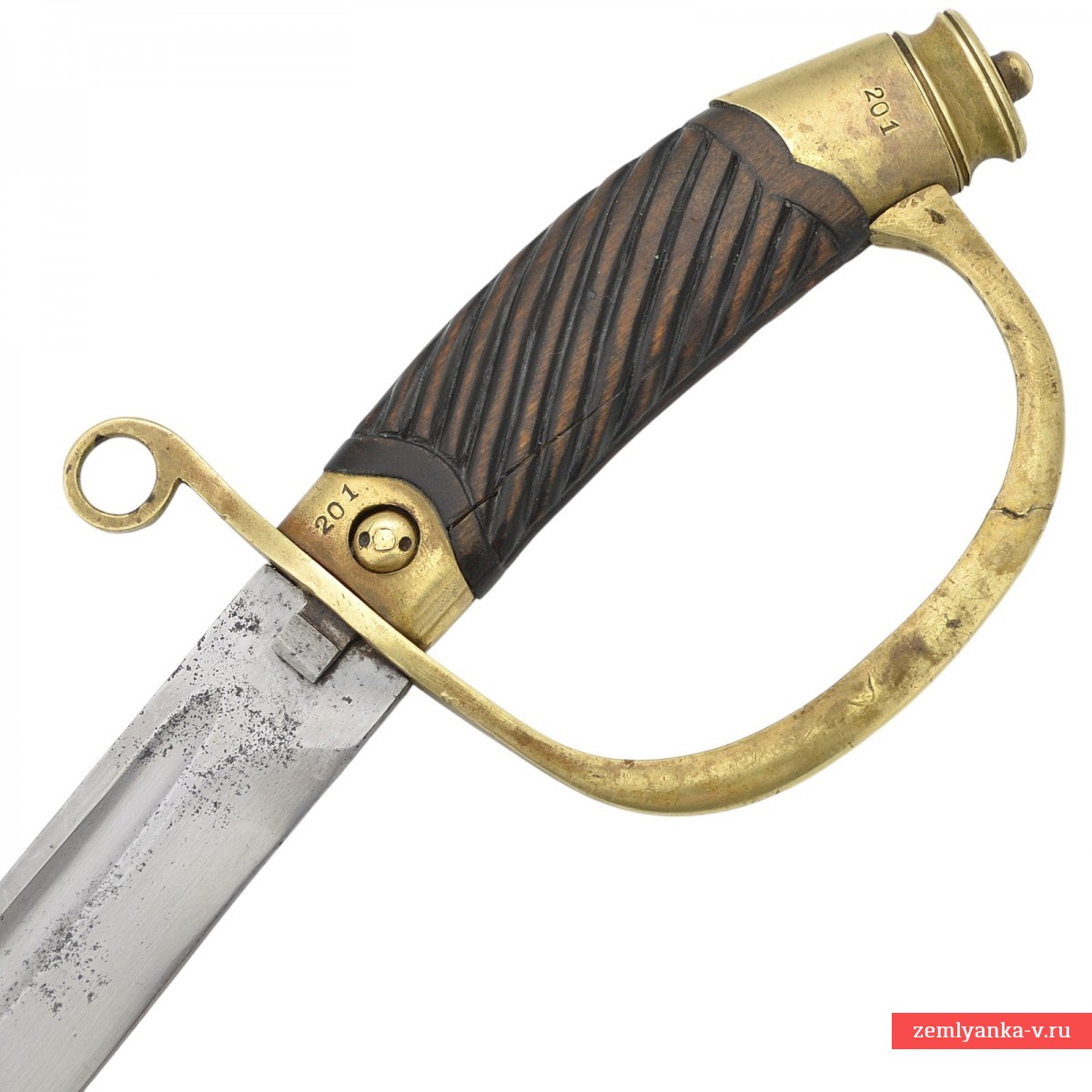 Чрезвычайно редкий на нашем рынке экземпляр уставного оружия, изготовленный незначительной партией в 200-300 экземпляров для служащих исправительной тюрьмы «Какола» (г. Турку), о чем говорит клеймо «KURITUSHUONE TURUSSA / KAKOLA» (под короной) на пяте клинка. Конструкция эфеса сходна с эфесами русских офицерских шашек образца 1881 года. Клинок стальной, прямой, однолезвийный, с одним узким долом. Боевой конец двулезвийный. У пяты клинка располагается пружина защелки. Ножны отсутствуют. Сохранность хорошая, на клинке следы коррозии, чистки. Дужка гарды с трещиной. Гарантия подлинности.