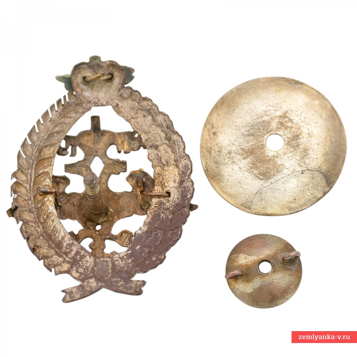 Оригинальный и достаточно редкий офицерский вариант знака в неплохом коллекционном состоянии. Бронза, штамповка, золочение, серебрение. Утрачен накладной эмалевый щит в центре и бант с аббревиатурой «МВ» в нижней части. Незначительная реставрация – корона в верхней части подобрана от другого идентичного знака. Гарантия подлинности.