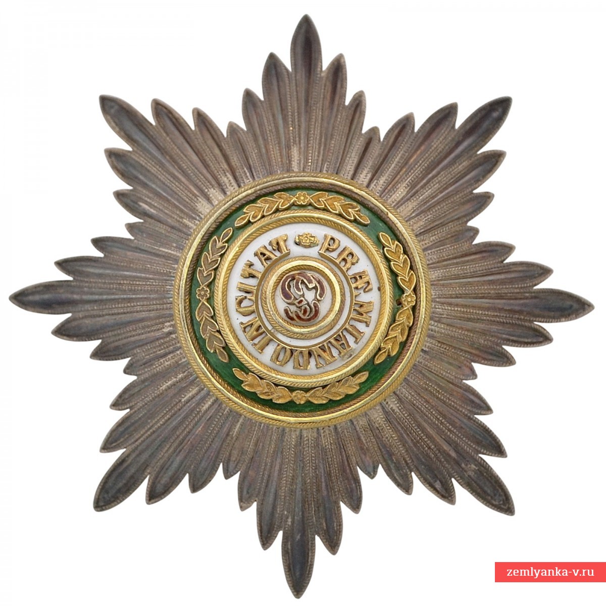 С 1855 года к знакам ордена за военные отличия присоединялись два накрест лежащих меча. В случае награждения тем же орденом более высокой степени за невоенные заслуги, мечи помещались в верхней части креста и звезды.