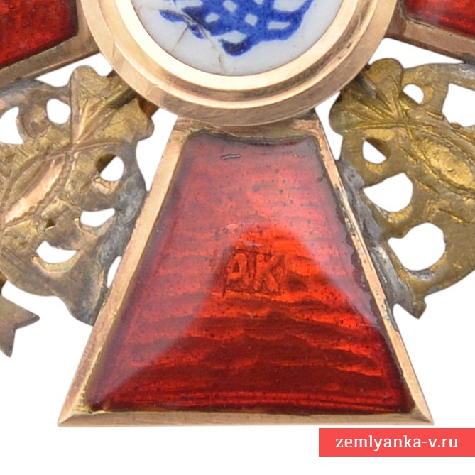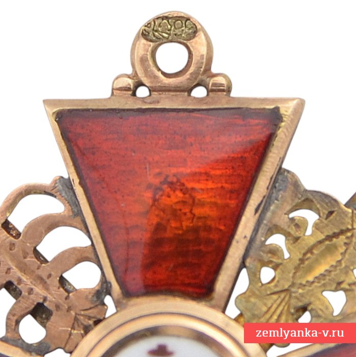 Оригинальный орден в неплохом коллекционном состоянии. Золото, гильоше, эмаль. Размер 34*39 мм. Вес без промзвена 9,3 грамм. Клейма на ушке пробирное 56. Изготовитель – фирма «Keibel» — официальный поставщик Капитула с 1836 по 1905 г. С 1836 по 1862 г. (до 1854 г. совместно с Генрихом Вильгельмом Кеммерером) ею владел Иоганн Вильгельм Кейбель (1788 — 1862). После смерти И.В. Кейбеля поставщиком стал его сын, Юлиус Кейбель (1852 — 1882), а в 1882 — 1905 гг. им был внук И.В. Кейбеля, Альберт Кейбель (1854 — 1910). Сохранность хорошая, меч справа – старая замена. В комплекте оригинальная лента. Гарантия подлинности.