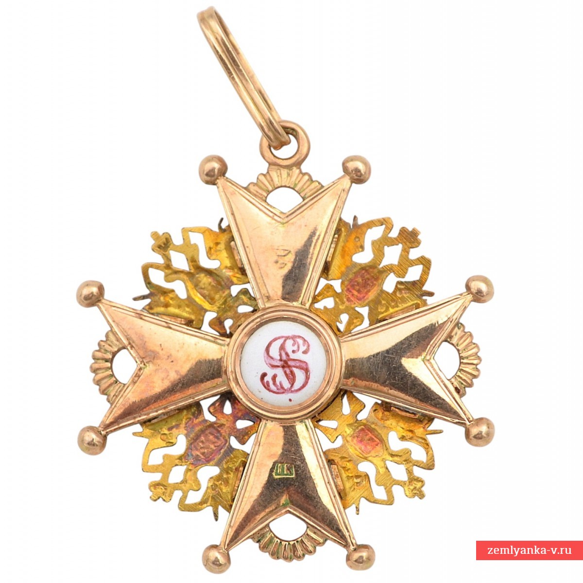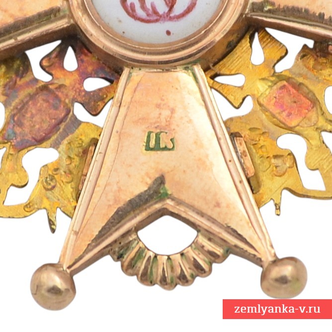 Оригинальный орден в отличном состоянии. Золото 56 пробы, эмаль, гильоше, штамповка. Вес 10,3 грамм. Размеры 42*39 мм. Клеймо на нижнем луче «IК», на верхнем – российский двуглавый орел. Клейма на ушке пробирное 56. Изготовитель – фирма «Keibel» — официальный поставщик Капитула с 1836 по 1905 г. С 1836 по 1862 г. (до 1854 г. совместно с Генрихом Вильгельмом Кеммерером) ею владел Иоганн Вильгельм Кейбель (1788 — 1862). После смерти И.В. Кейбеля поставщиком стал его сын, Юлиус Кейбель (1852 — 1882), а в 1882 — 1905 гг. им был внук И.В. Кейбеля, Альберт Кейбель (1854 — 1910). Гарантия подлинности.