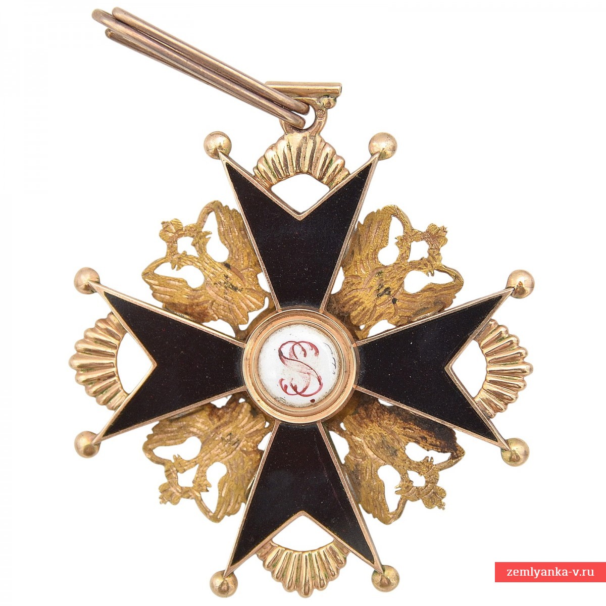 Золото 56 пробы, эмаль. Оригинальный орден в очень хорошем коллекционном состоянии. Предмет относится к категории орденов с «черной» эмалью. Такие кресты изготавливались частными фирмами в период с 1840-х по 1870-е годы, часто «в цвет мундира». Вес 18,7 грамм. Размер 49*54 мм. Гарантия подлинности.