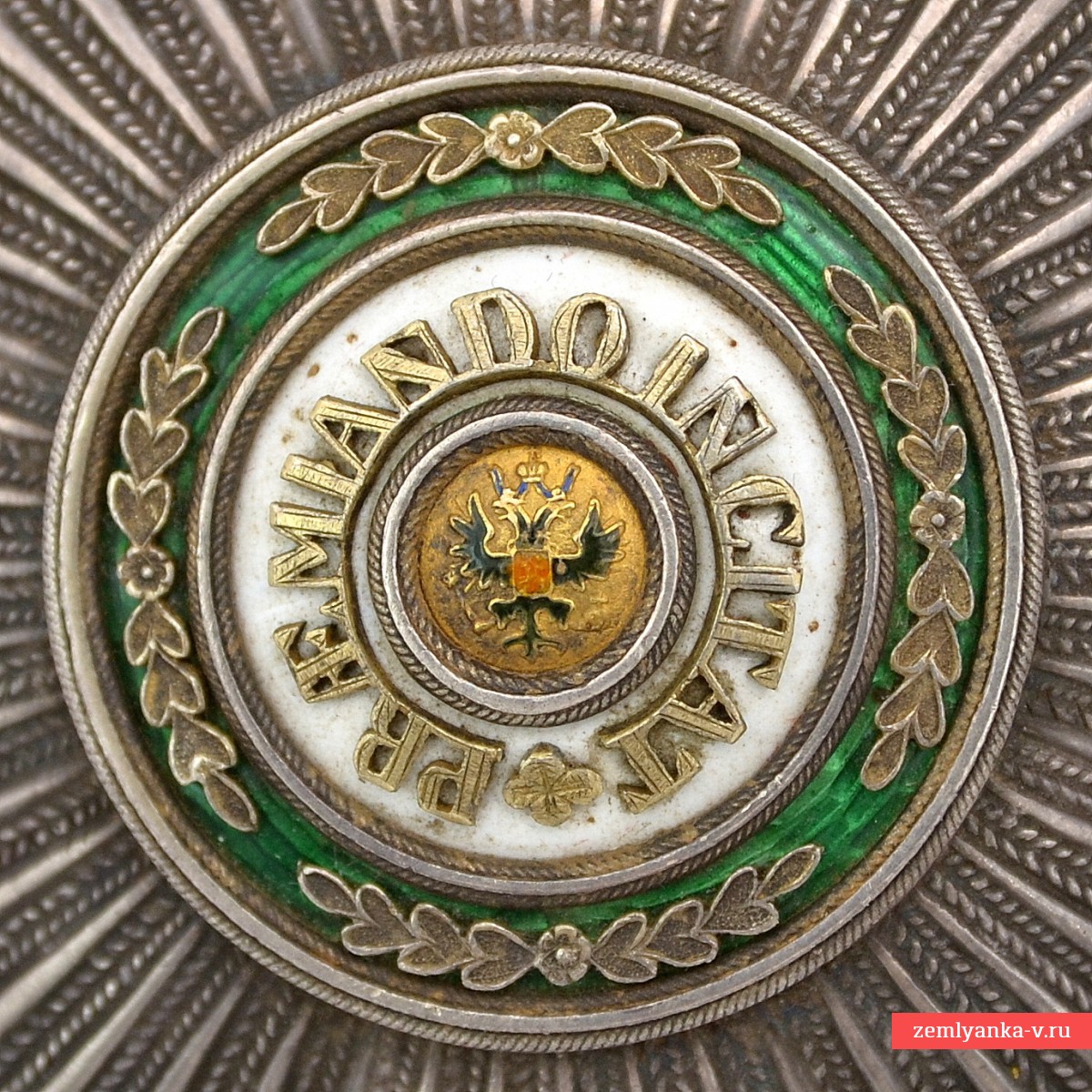 Оригинальная звезда в прекрасном коллекционном состоянии. Серебро 84 пробы, позолота, эмаль. Размер 88*90 мм. Вес 54,3 грамма. Изготовитель – фирма «Keibel» — официальный поставщик Капитула с 1836 по 1905 г. С 1836 по 1862 г. (до 1854 г. совместно с Генрихом Вильгельмом Кеммерером) ею владел Иоганн Вильгельм Кейбель (1788 — 1862). После смерти И.В. Кейбеля поставщиком стал его сын, Юлиус Кейбель (1852 — 1882), а в 1882 — 1905 гг. им был внук И.В. Кейбеля, Альберт Кейбель (1854 — 1910). В подобной сохранности редкость. Гарантия подлинности.
