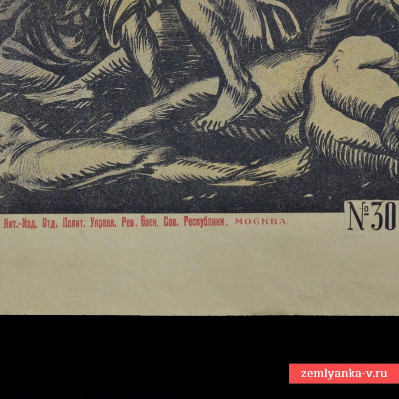 Оригинальный и крайне редкий большеформатный плакат в очень хорошем коллекционном состоянии. Литературно-Издательский Отдел Политуправления РевВоенСовета республики, №30. Размер 980*720 мм. Гарантия подлинности.